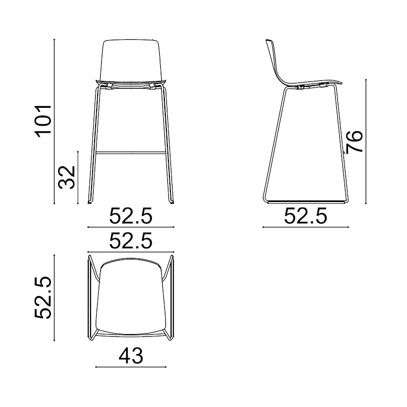 | Material: | Hocker mit Kufengestell aus verchromtem oder lackiertem Stahl. Sitzschale aus Holz, bezogen mit Stoff, Leder, beschichtetem Stoff oder Kundenmaterial. Der Bezug ist abtrennbar und kann von Fachpersonal ausgetauscht werden, da er ohne Klebstoff angebracht wird. Für Holzböden sind auch Filzgleiter erhältlich. |