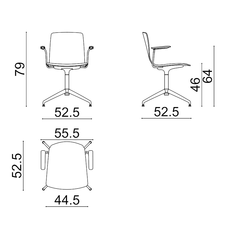 | Material: | Stuhl mit drehbarem Sternfuß aus lackiertem Aluminium. Sitzschale aus Mehrschichtholz mit Ausführung aus Verbundholz Eiche oder Nussbaum. |
