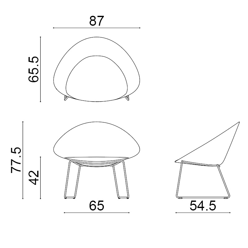 | Material: | Lounge-Sessel auf Kufengestell aus lackiertem Stahl. Aufbau aus Polypropylen aus 80 % Recyclingmaterial, vollständig bezogen mit Stoff, Leder, beschichtete Textilien oder kundenspezifischem Bezug. |