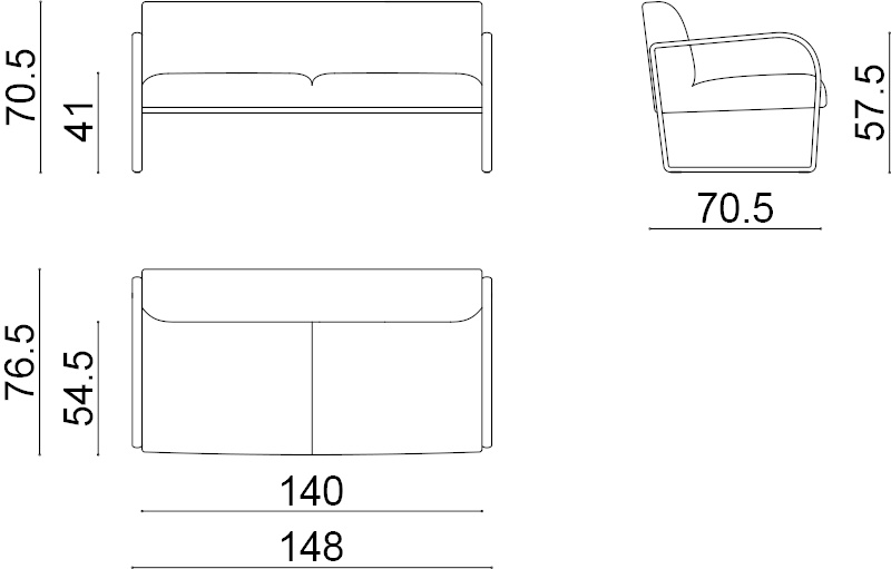 | Abmessungen: | Breite: 148 cm, Höhe: 70,5 cm, Tiefe: 76,5 cm |