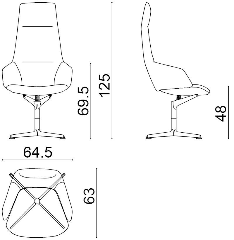 | Material: | Drehsessel mit zentralem Drehgestell aus Aluminium. Das Auflageelement der Schale und die Feder, die einen höheren Sitzkomfort gewährt, sind in derselben Ausführung wie das Gestell erhältlich. Schale aus Polyurethan mit hoher Rückenlehne bezogen mit Stoff, Leder, beschichtetem Stoff oder einem kundenspezifischen Bezug. |
