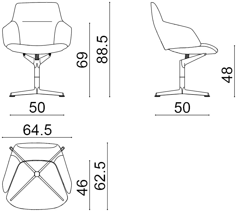 | Material: | Armsessel mit zentralem Gestell aus Aluminium und Mechanismus zur automatischen Rückstellung. Das Auflageelement der Schale und die Feder, die einen höheren Sitzkomfort gewährt, sind in derselben Ausführung wie das Gestell erhältlich. Schale aus Polyurethan mit niedriger Rückenlehne bezogen mit Stoff, Leder, beschichtetem Stoff oder einem kundenspezifischen Bezug. |