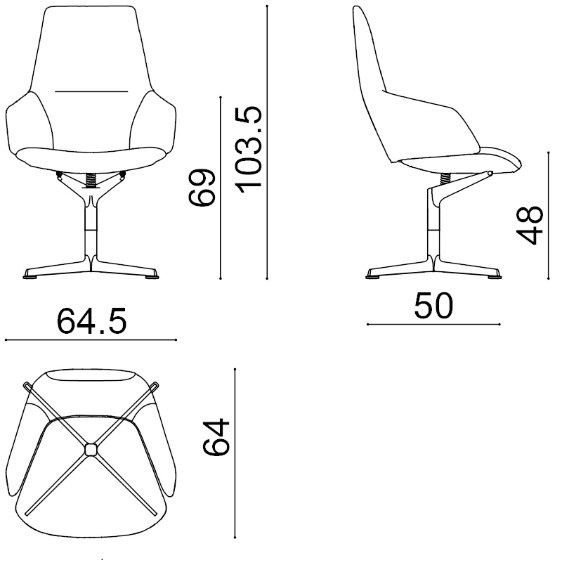 | Material: | Armsessel mit zentralem Gestell aus Aluminium und Mechanismus zur automatischen Rückstellung. Das Auflageelement der Schale und die Feder, die einen höheren Sitzkomfort gewährt, sind in derselben Ausführung wie das Gestell erhältlich. Schale aus Polyurethan mit mittelhoher Rückenlehne bezogen mit Stoff, Leder, beschichtetem Stoff oder einem kundenspezifischen Bezug. |