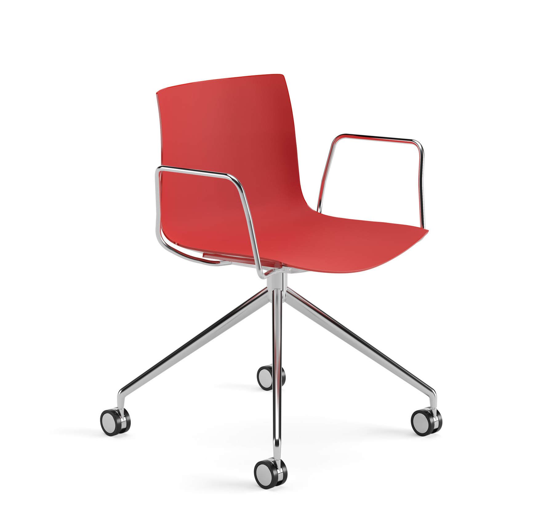| Material: | Sitzelement auf fixem Fußgestell aus Aluminium glänzend oder lackiert, auf selbstbremsenden Rollen. Die Schale ist aus Polypropylen einfarbig, Polypropylen zweifarbig. |