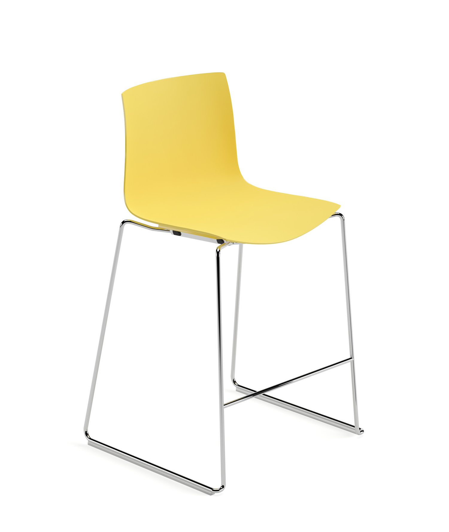 | Material: | Barhocker mit Kufengestell aus verchromtem oder lackiert Stahl, Schale aus Polypropylen einfarbig oder Polypropylen zweifarbig. |
