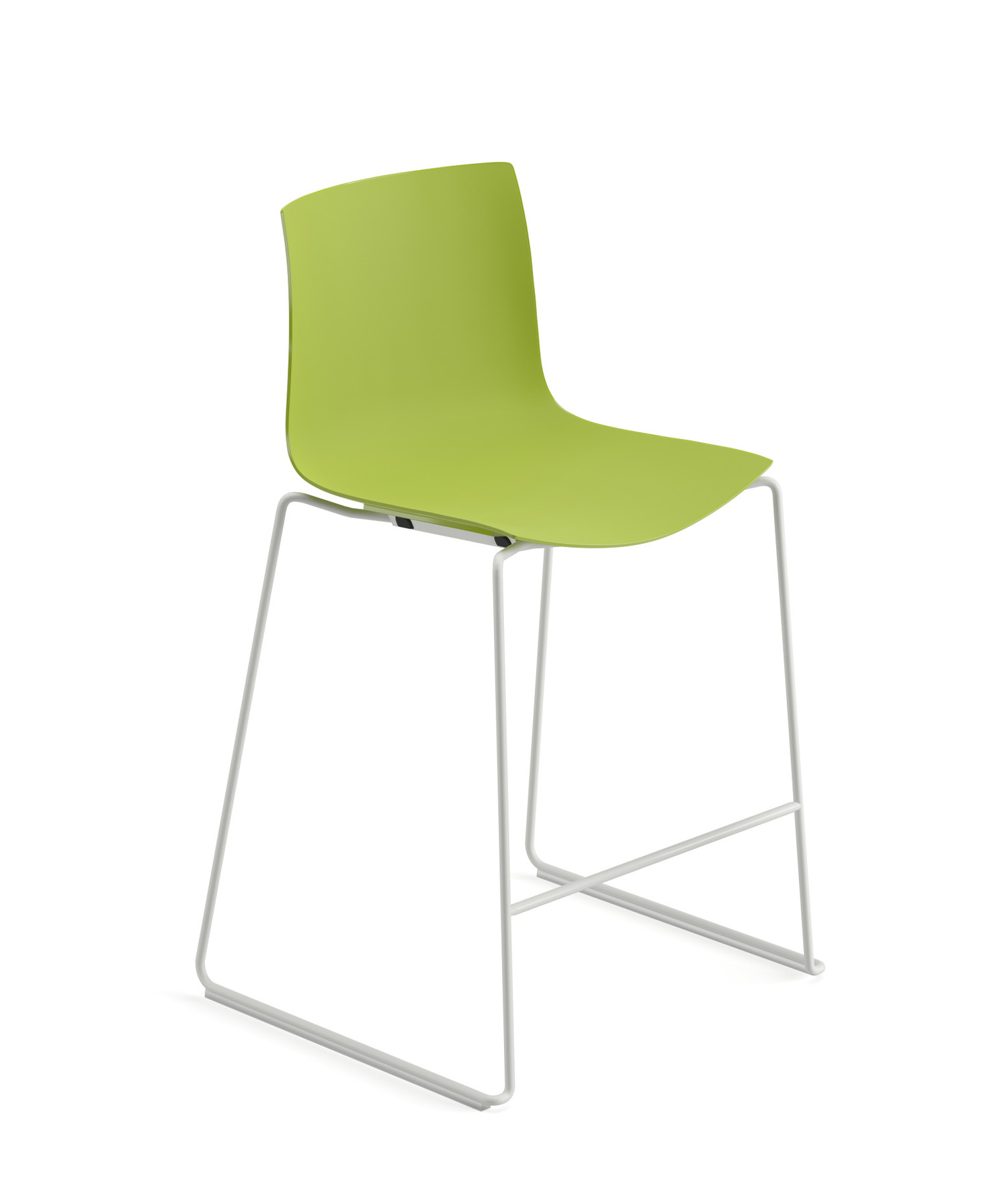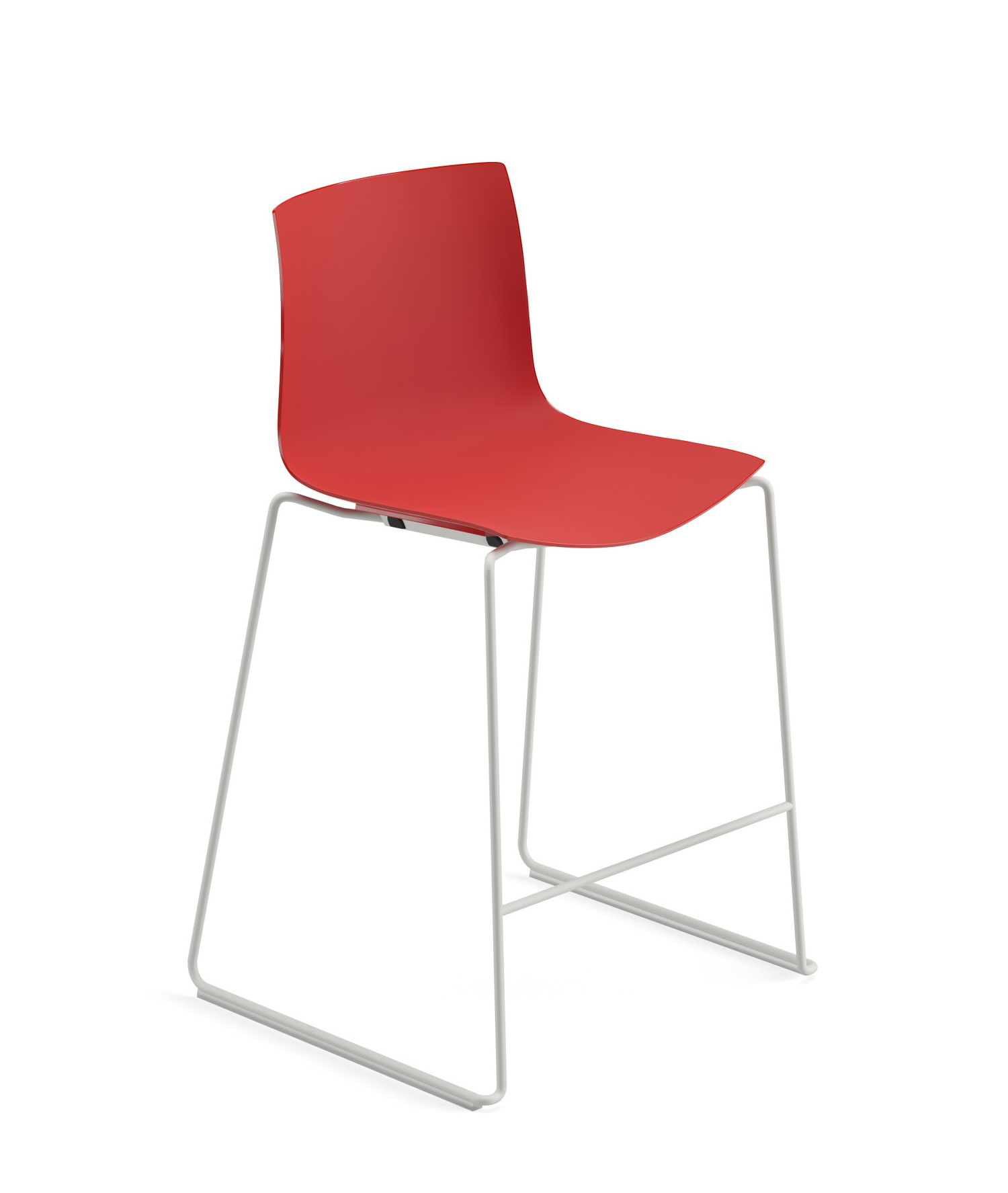 | Material: | Barhocker mit Kufengestell aus verchromtem oder lackiert Stahl, Schale aus Polypropylen einfarbig oder Polypropylen zweifarbig. |
