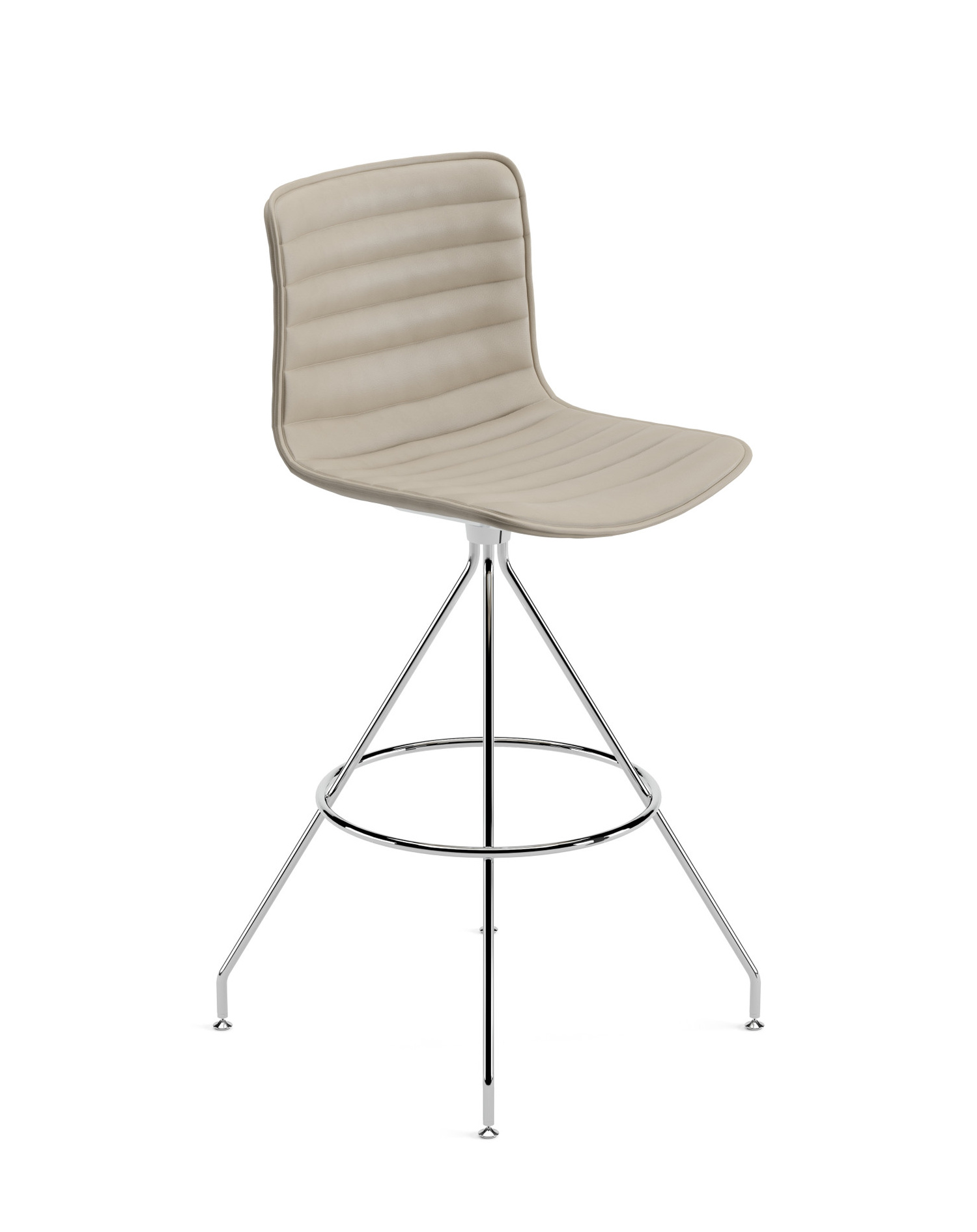 | Material: | Barhocker auf Drehfuß aus verchromtem Stahl. Die Sitzschale mit hoher Rückenlehne ist aus Polypropylen gepolstert, mit Weichleder, beschichtete Textilien, Stoff oder Kundenmaterial. Horizontale Nähte. |