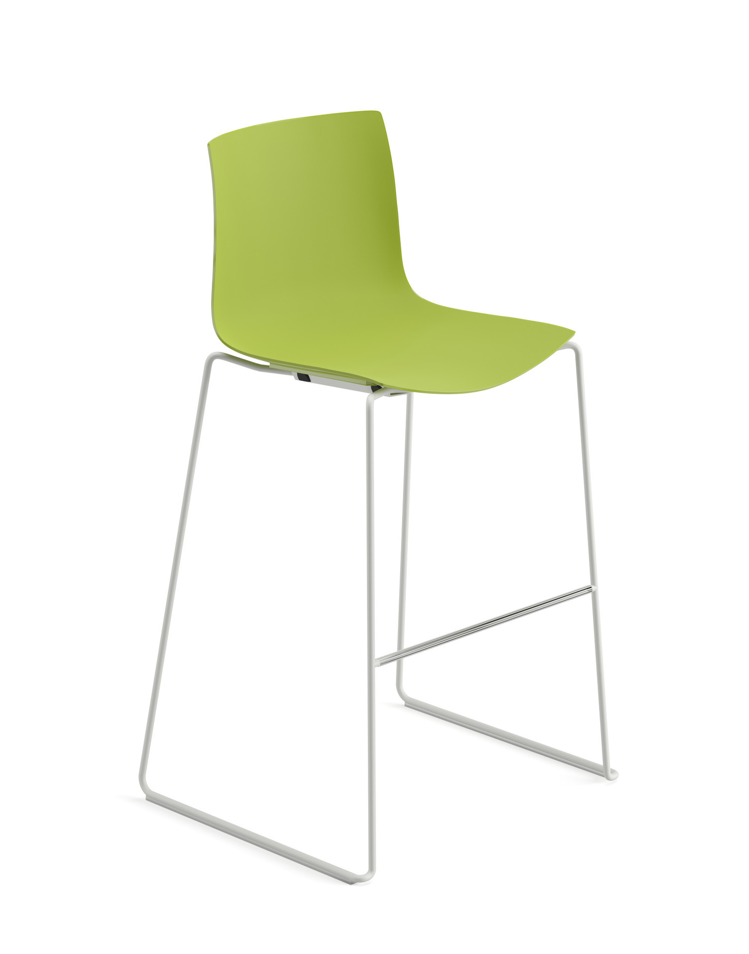 | Material: | Barhocker mit Kufengestell aus verchromtem oder lackiert Stahl, Schale aus Polypropylen einfarbig oder Polypropylen zweifarbig. |