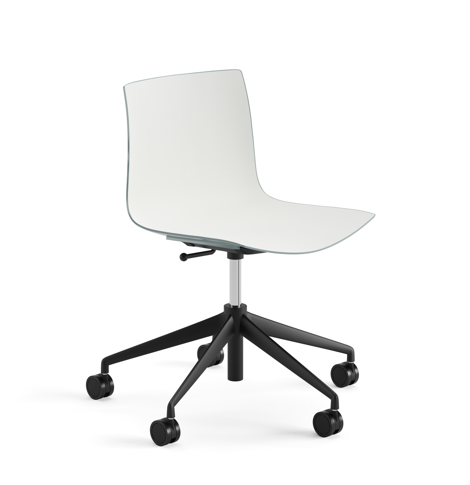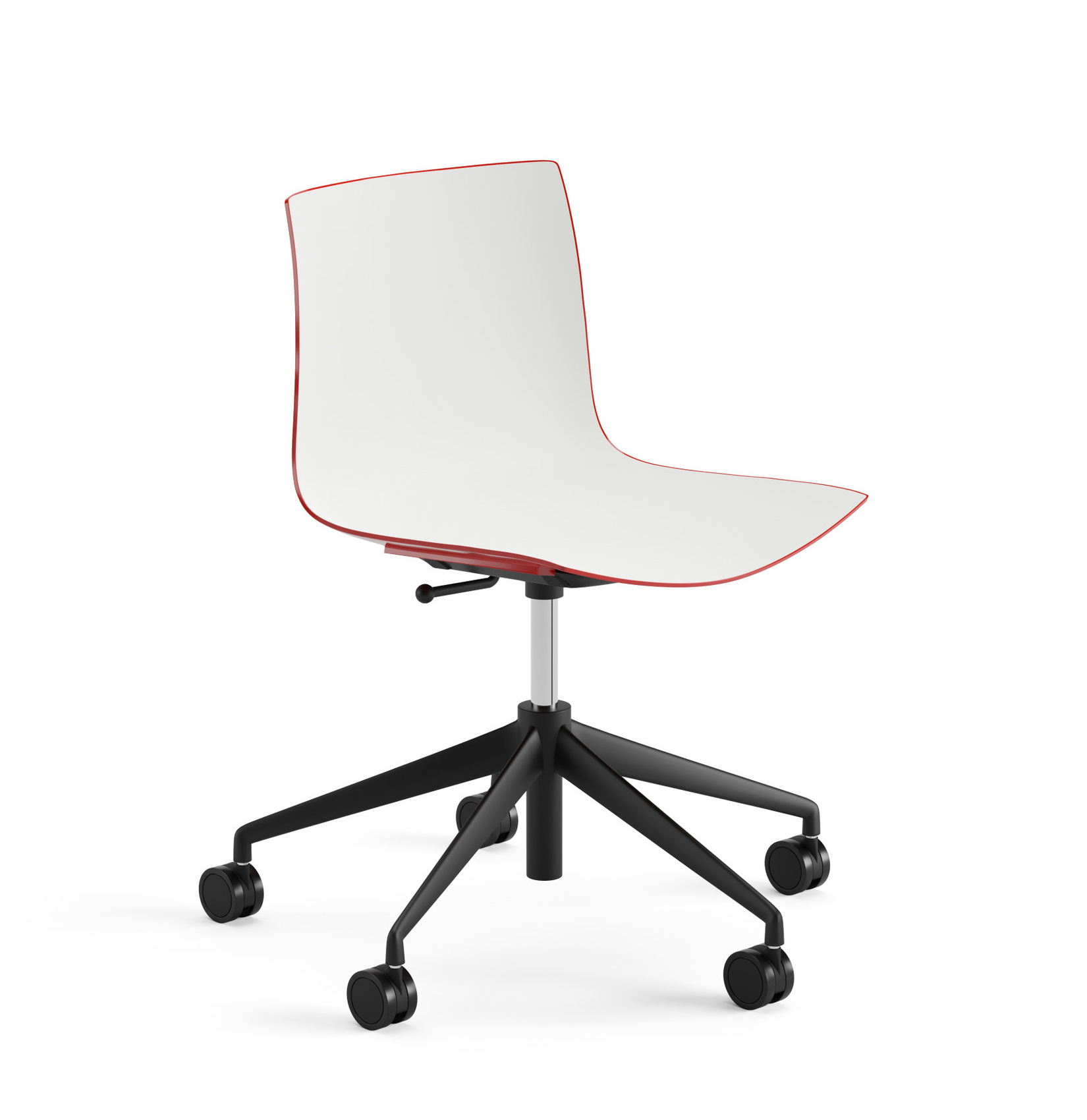 | Material: | Sitzelement auf 5-strahligem Drehgestell aus glänzendem oder lackiertem Aluminium, auf selbstbremsenden Rollen, mit Gaslifter zur Höhenverstellung. Schale aus Polypropylen einfarbig, Polypropylen zweifarbig. |