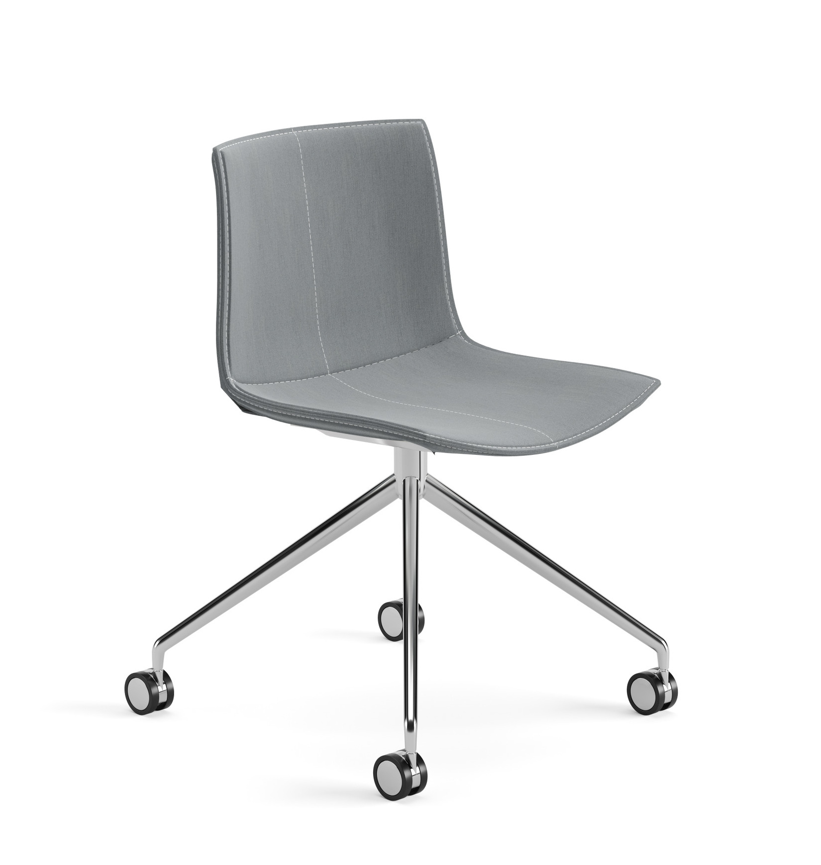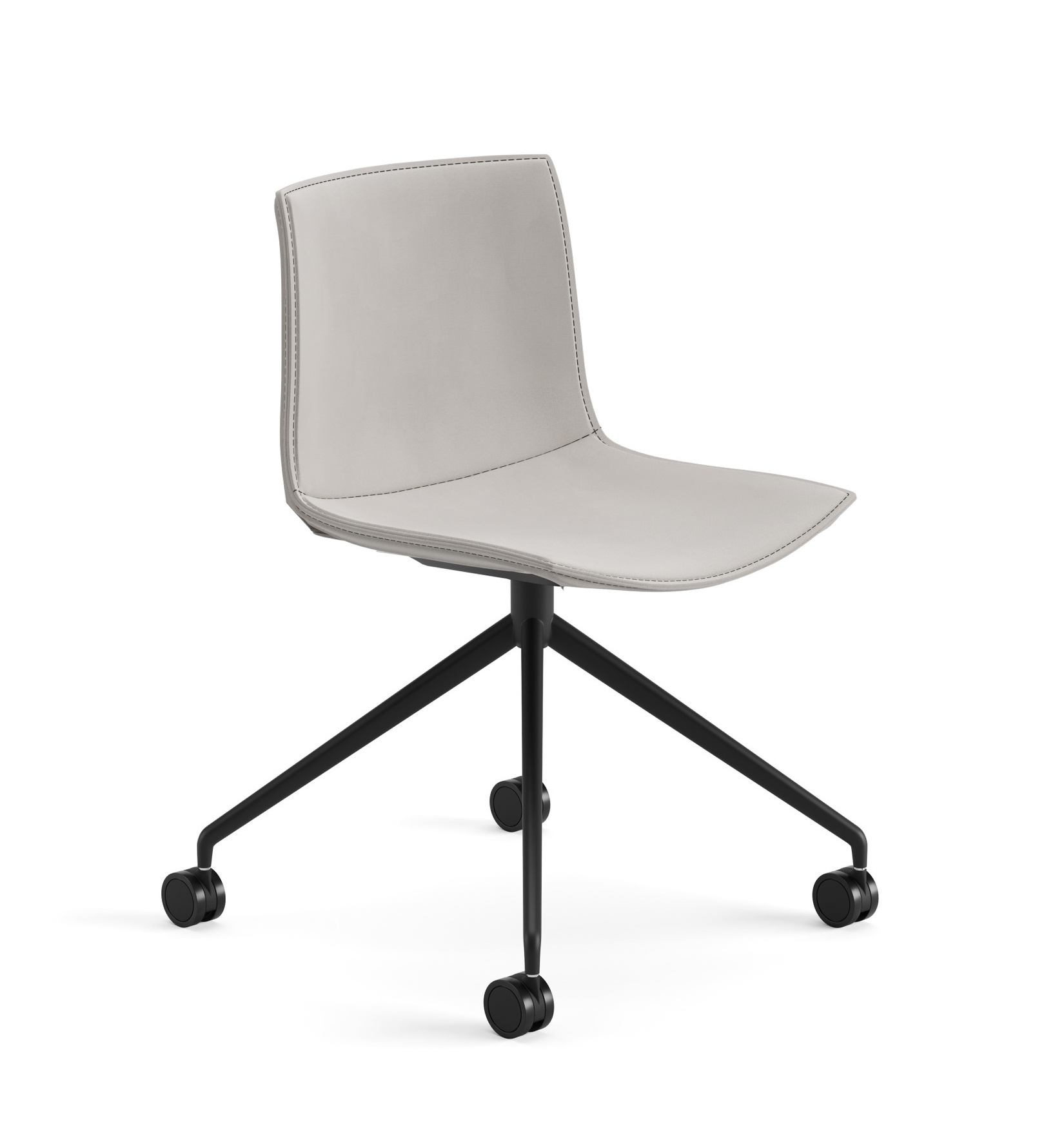 | Material: | Stuhl auf fixem Fußgestell aus Aluminium glänzend oder lackiert, auf selbstbremsenden Rollen. Die Sitzschale besteht aus Polypropylen, und ist mit einem abnehmbaren nicht waschbaren Bezug aus Leder, beschichtete Textilien, Stoff oder Kundenmaterial bezogen. |