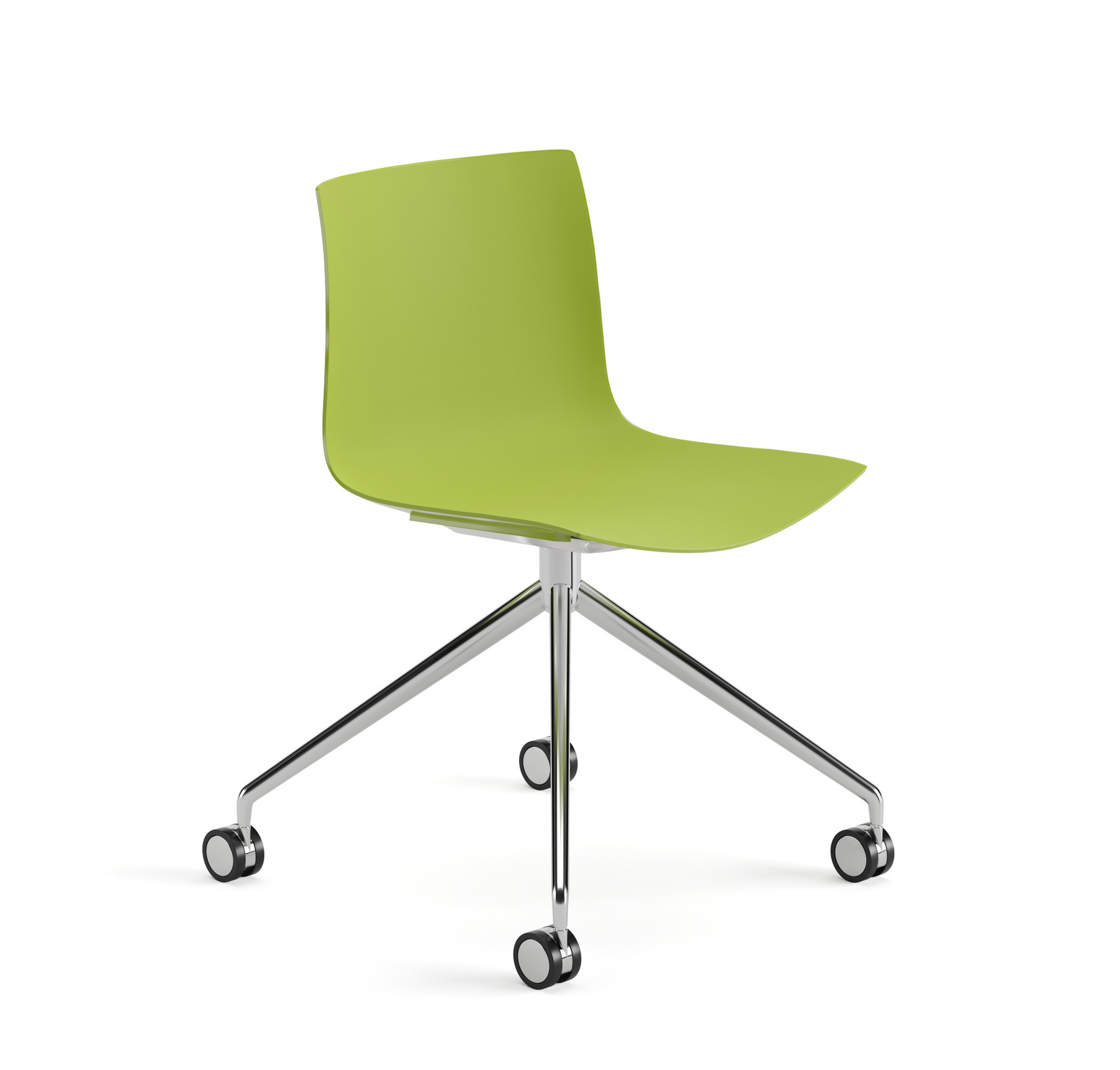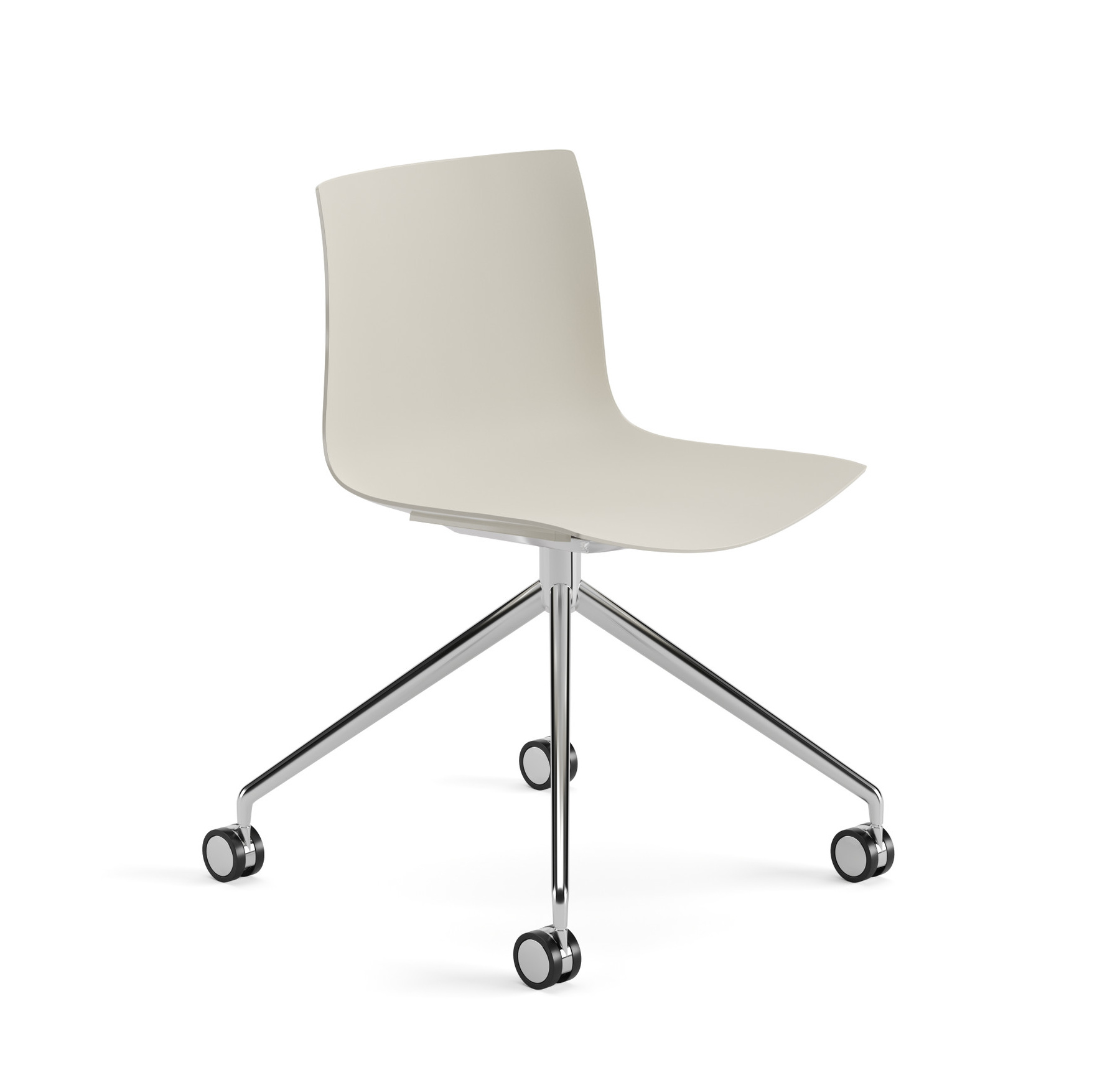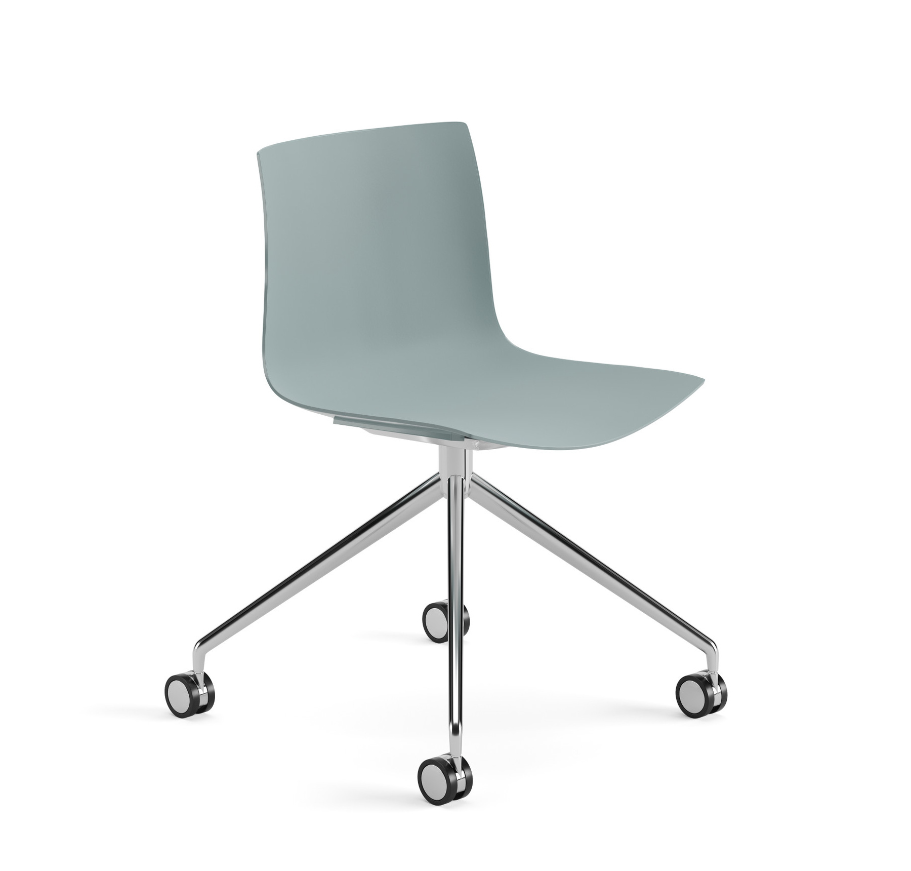 | Material: | Sitzelement auf fixem Fußgestell aus Aluminium glänzend oder lackiert, auf selbstbremsenden Rollen. Die Schale ist aus Polypropylen einfarbig, Polypropylen zweifarbig. |