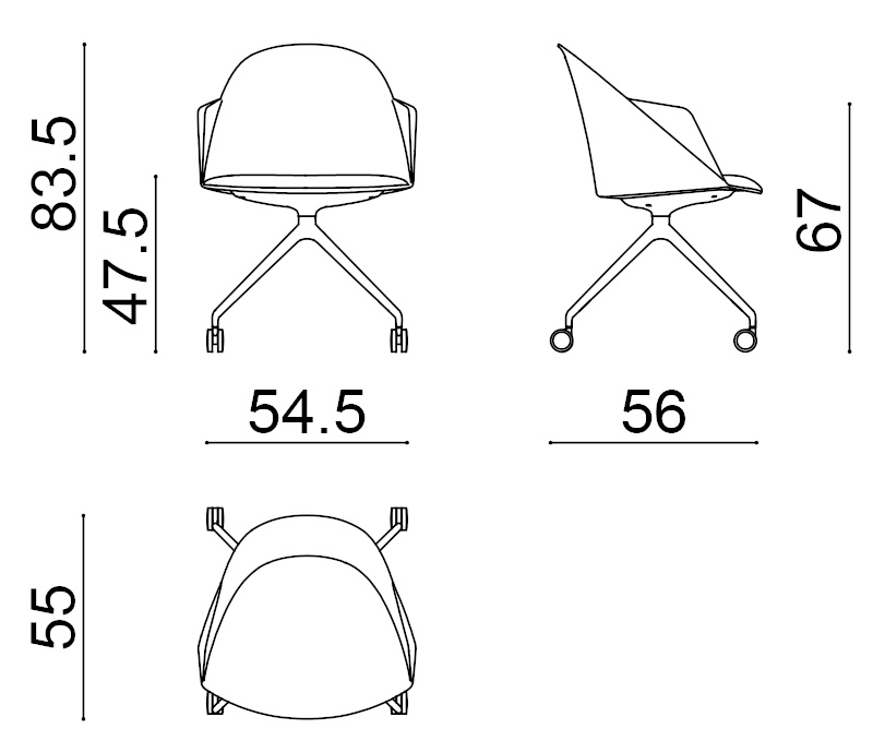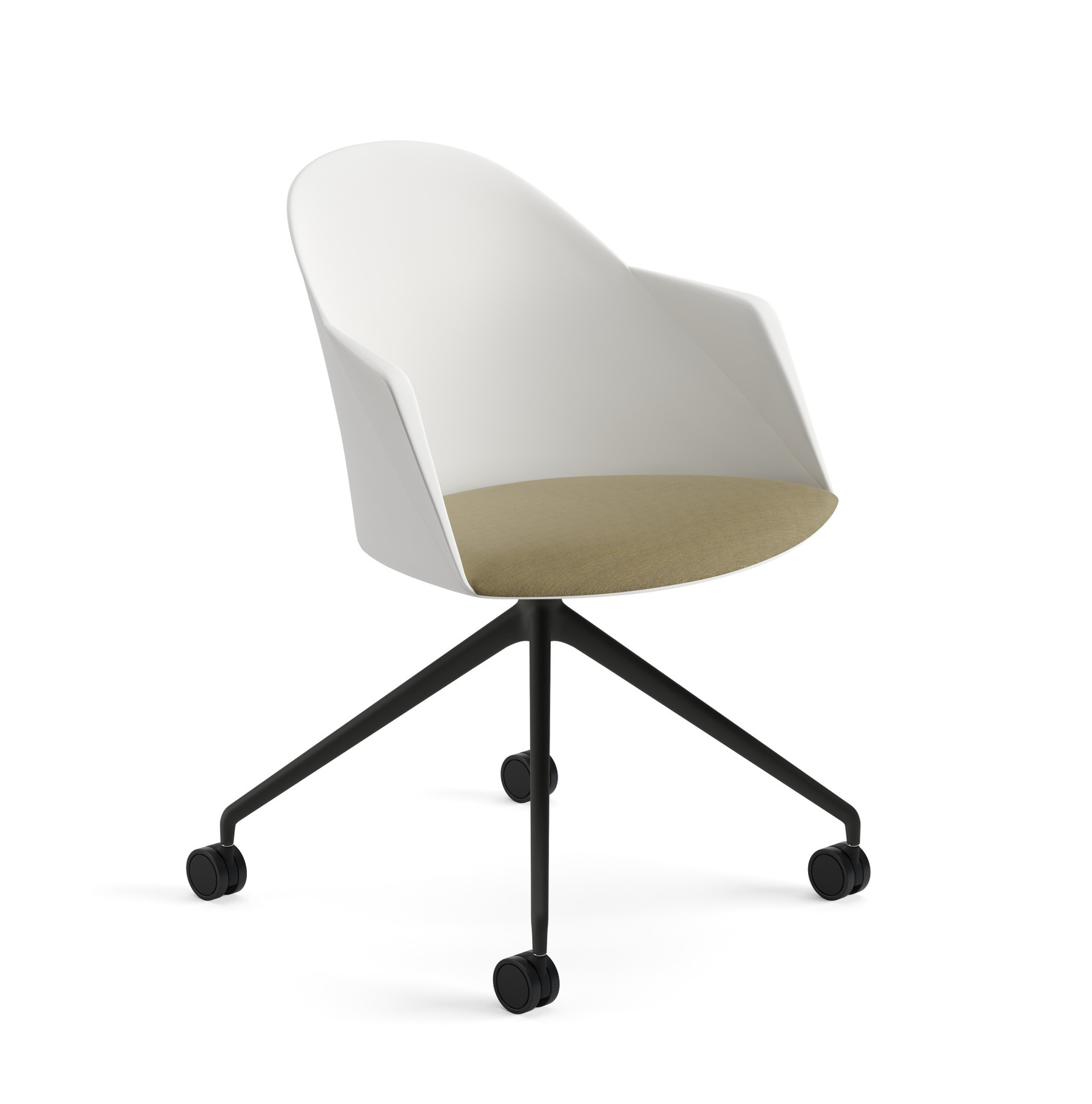 | Material: | Armsessel mit festem Sternfuß aus glänzendem oder pulverbeschichtetem Aluminium, montiert auf selbstbremsenden Rollen. Sitzschale aus Polypropylen, erhältlich in fünf Farben, mit fest angebrachtem Sitzkissen auf der Sitzfläche aus Stoff, Leder, beschichtete Textilien oder mit Bezug des Kunden. |