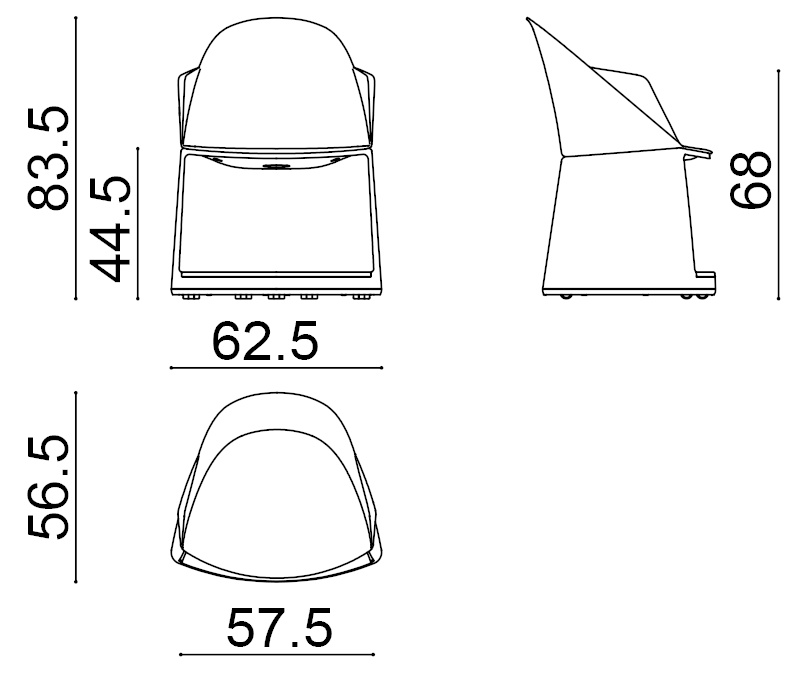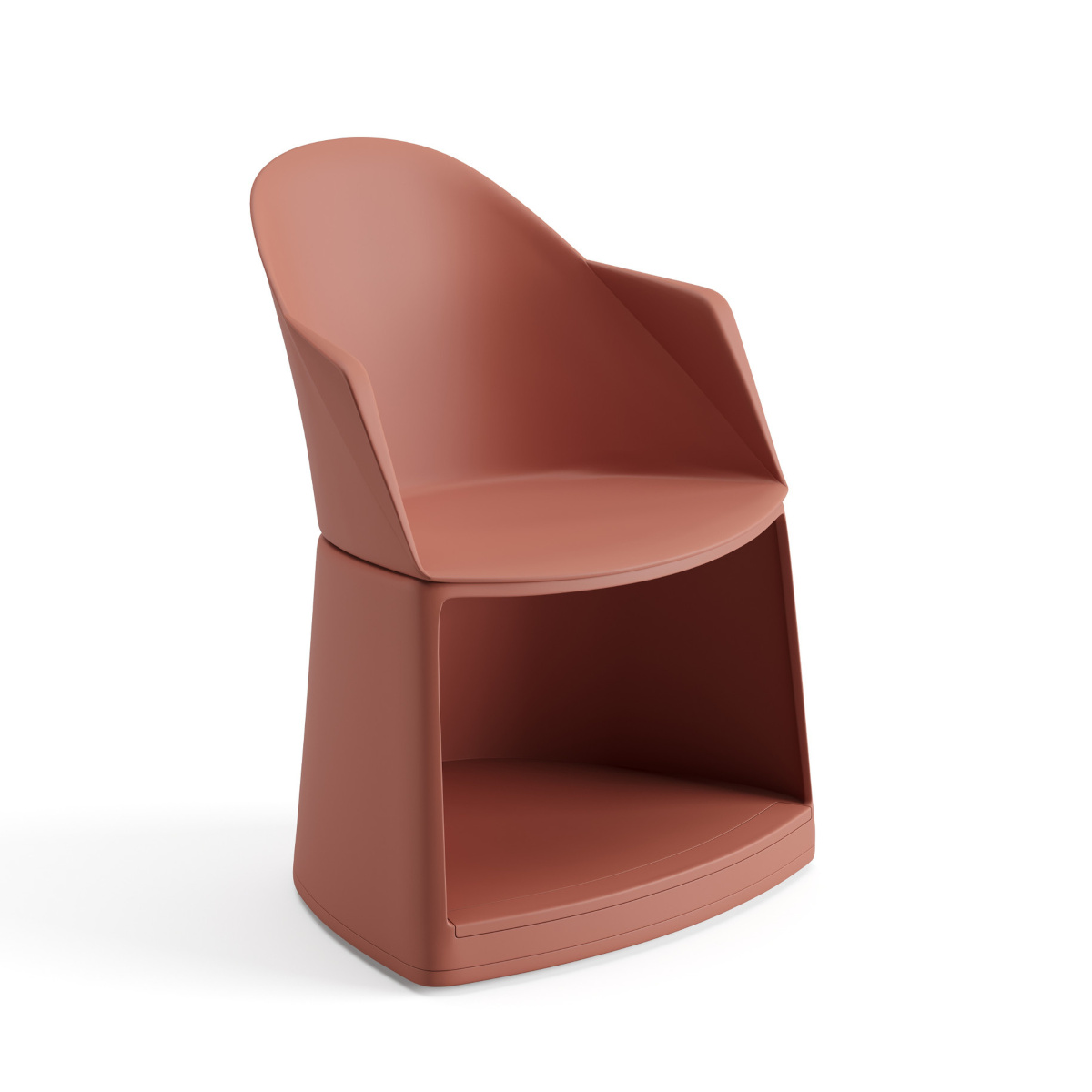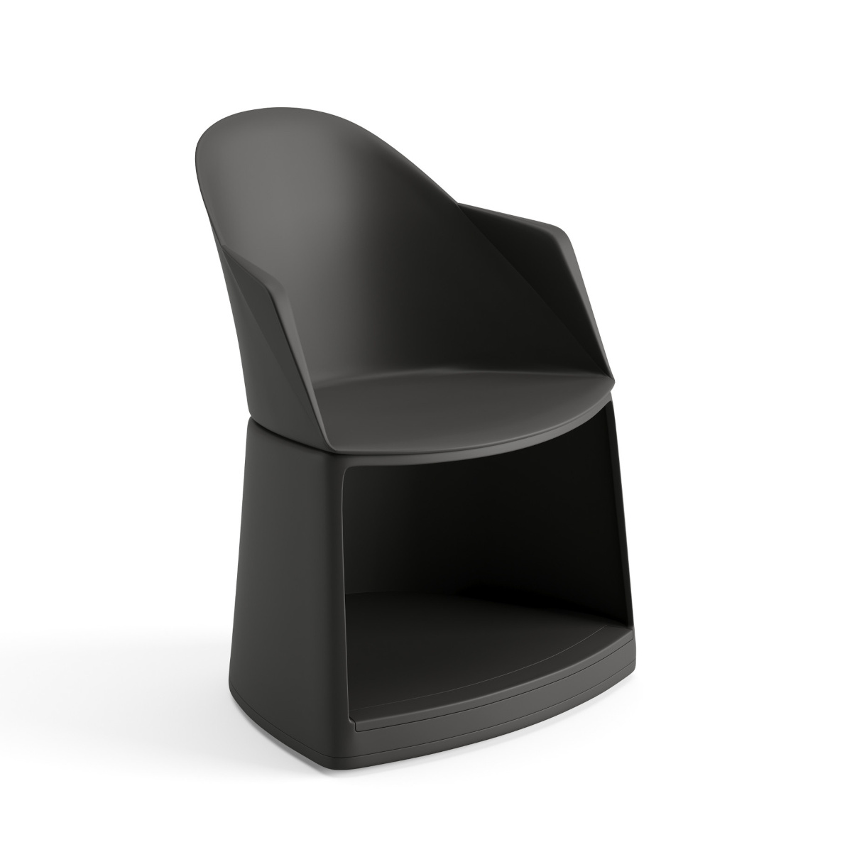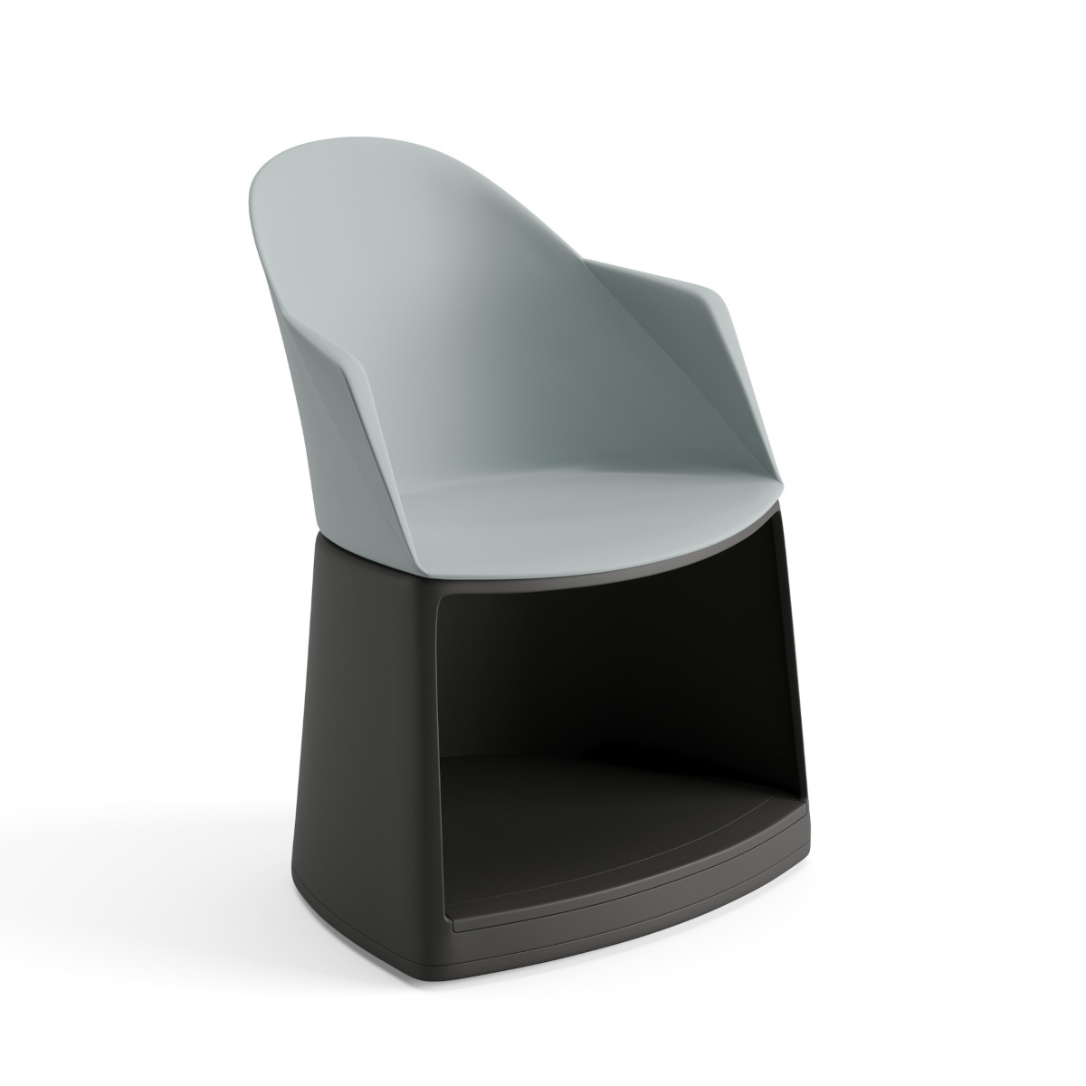 | Material: | Armsessel mit Storage-Gestell aus Polypropylen, erhältlich in vier Farben, mit Rollen. Sitzschale aus Polypropylen, erhältlich in fünf Farben. |