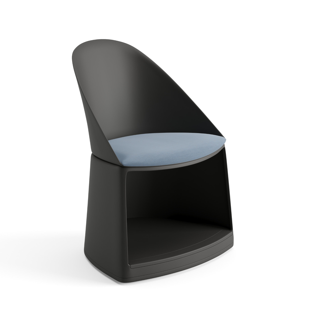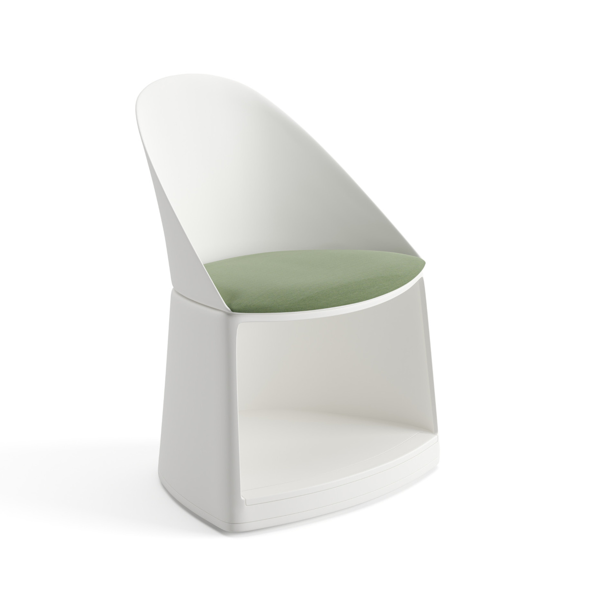 | Material: | Stuhl mit Storage-Gestell aus Polypropylen, erhältlich in vier Farben, mit Rollen. Sitzschale aus Polypropylen, erhältlich in fünf Farben, mit fest angebrachtem Sitzkissen aus Stoff, Leder, beschichtete Textilien oder mit Bezug des Kunden. |