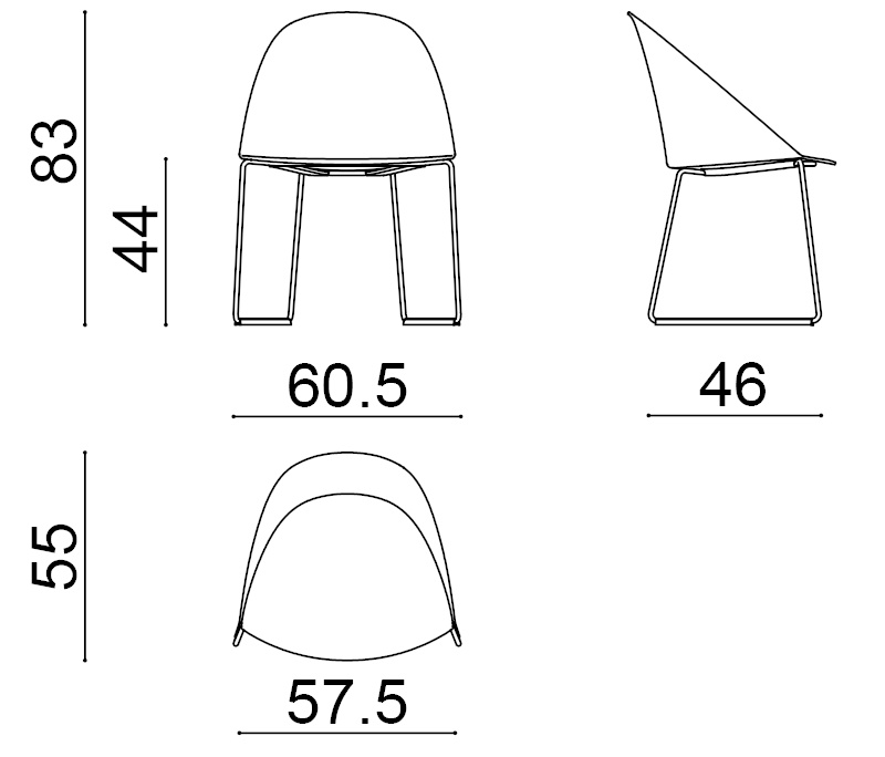 | Material: | Sitzelement mit Kufengestell aus verchromtem oder lackiert Stahl, Sitzschale aus Polypropylen, lieferbar in fünf Farben. |