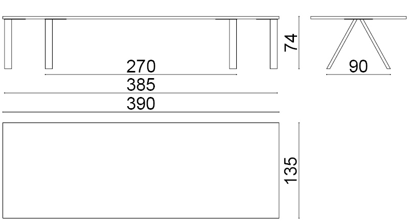 | Abmessungen: | Breite: 390 cm, Höhe: 74 cm, Tiefe: 135 cm |
