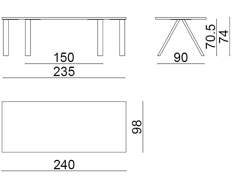 | Abmessungen: | Breite: 240 cm, Höhe: 74 cm, Tiefe: 98 cm |
