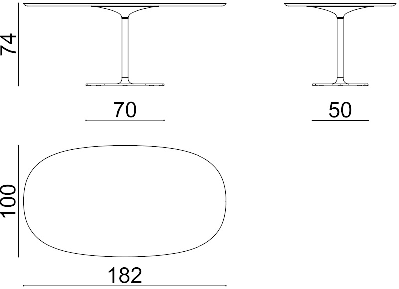 | Material: | Tisch mit ovalem Gestell aus glänzend weiß oder matt schwarz lackiertem Stahl. Platte aus Fenix®-Laminat (Dicke 2,6 cm). |