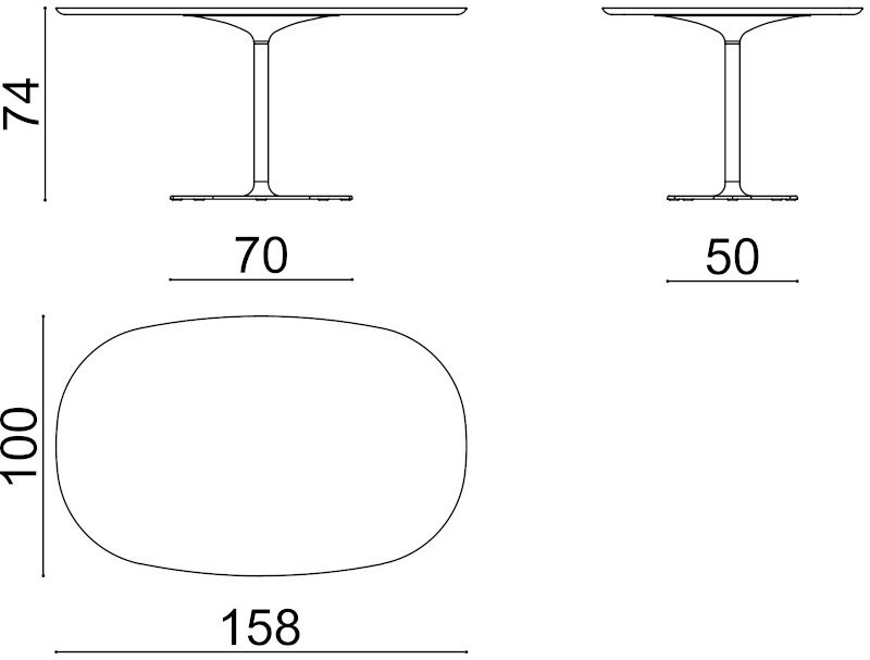 | Material: | Tisch mit ovalem Gestell aus glänzend weiß oder matt schwarz lackiertem Stahl. Platte aus Fenix®-Laminat (Dicke 2,6 cm). |