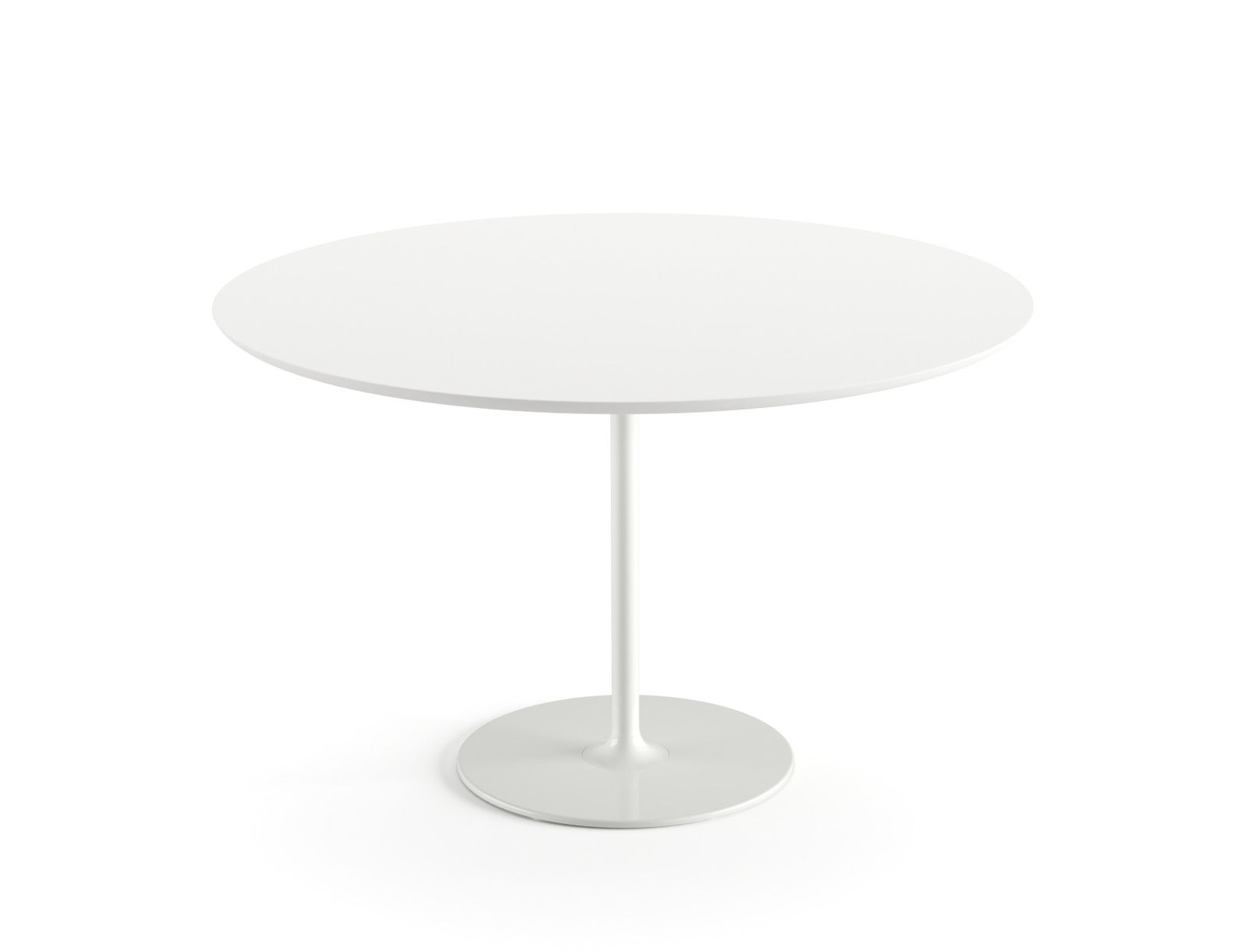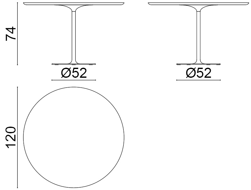 | Material: | Tisch mit rundem Gestell aus glänzend weiß oder matt schwarz lackiertem Stahl. Platte aus Fenix®-Laminat (Dicke 2,6 cm). |