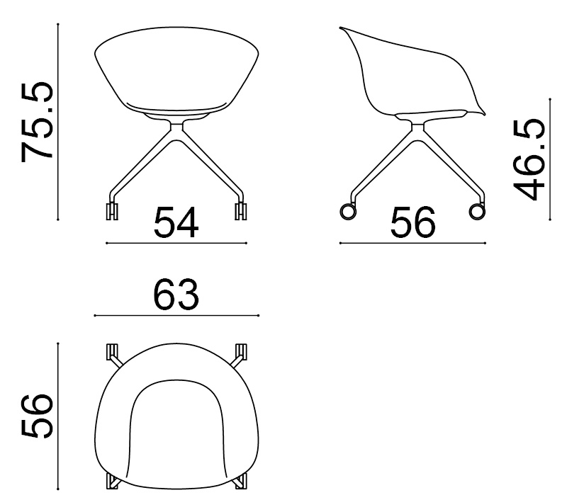 | Material: | Sitzelement mit fixem Fußgestell aus Aluminium, glänzend oder lackiert, auf selbstbremsenden Rollen. Sitzschale komplett bezogen mit Leder, beschichtete Textilien, Stoff oder Kundenmaterial. |