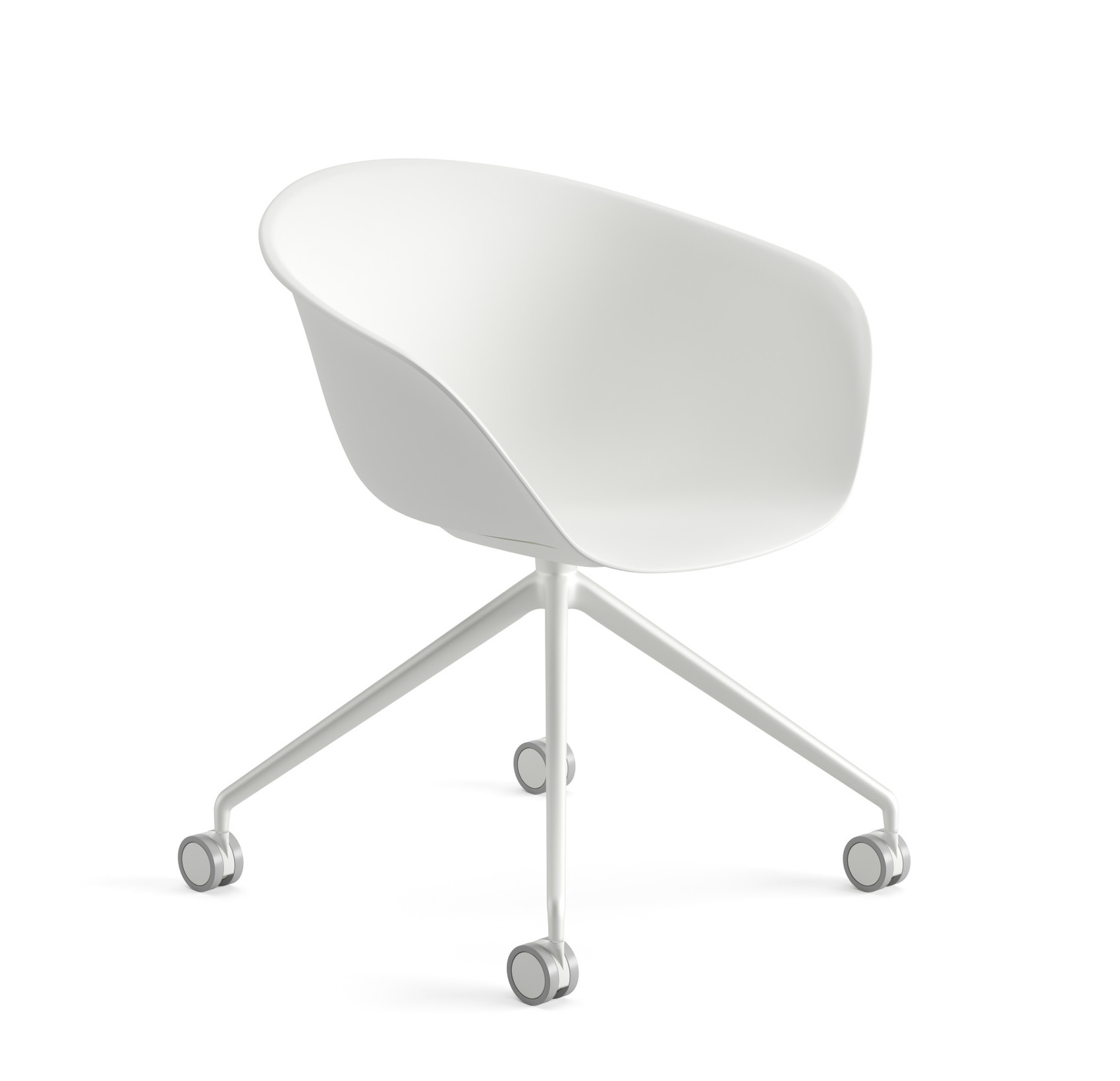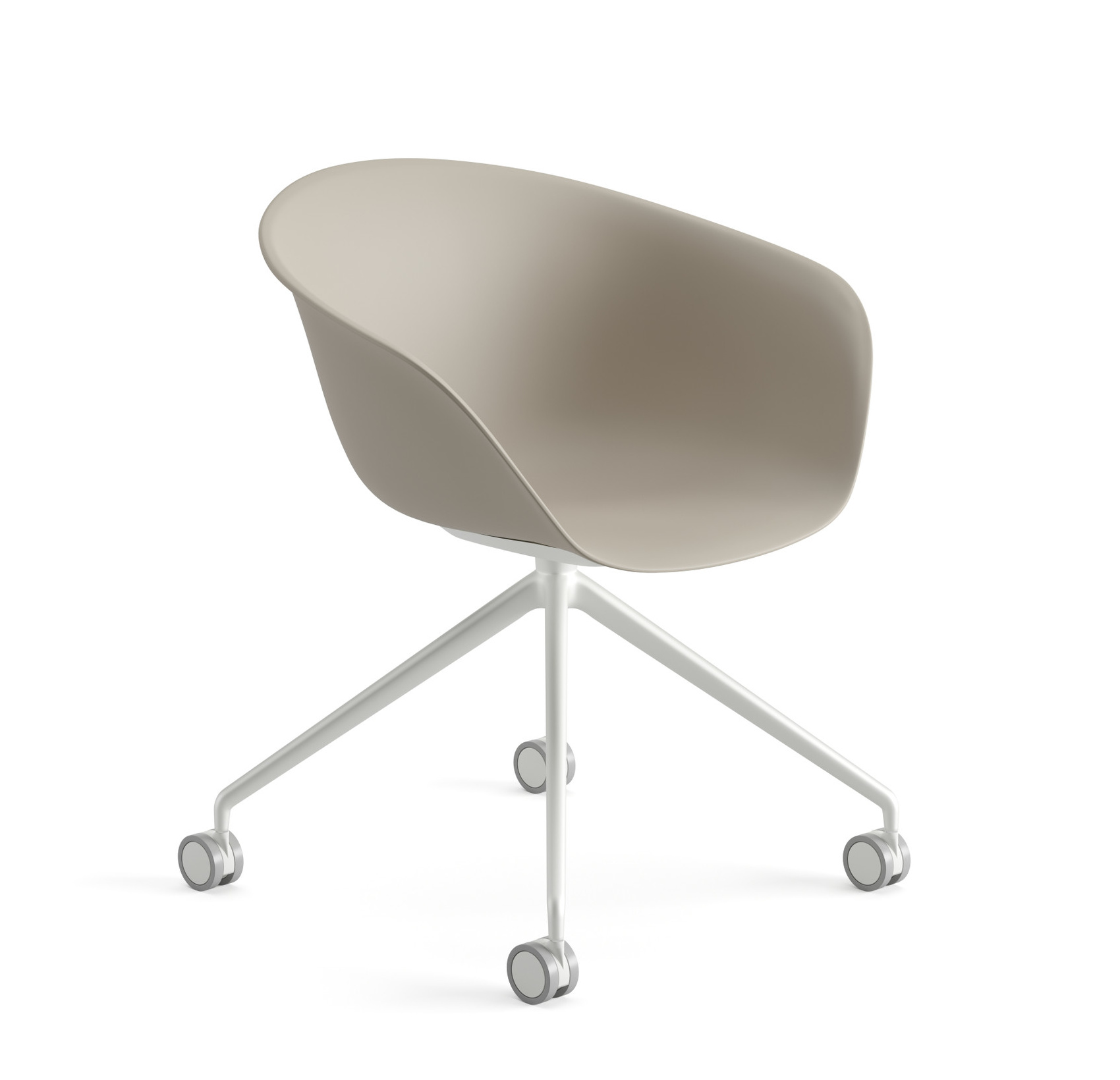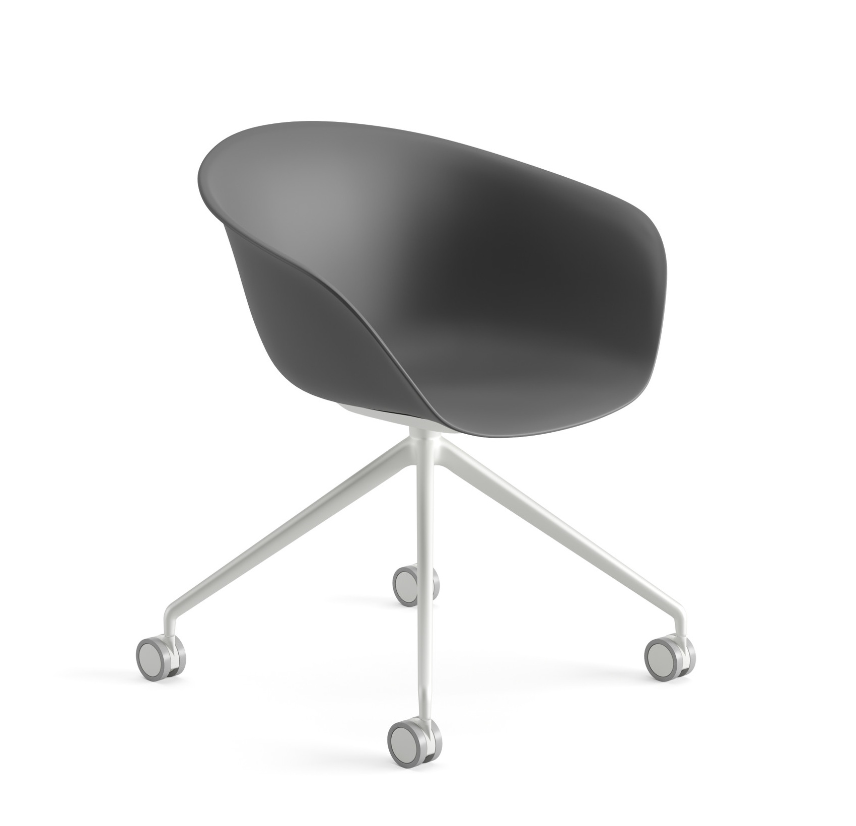 | Material: | Sitzelement mit fixem Fußgestell aus Aluminium, glänzend oder lackiert, auf selbstbremsenden Rollen. Sitzschale aus Polypropylen, lieferbar in 4 Farben. |