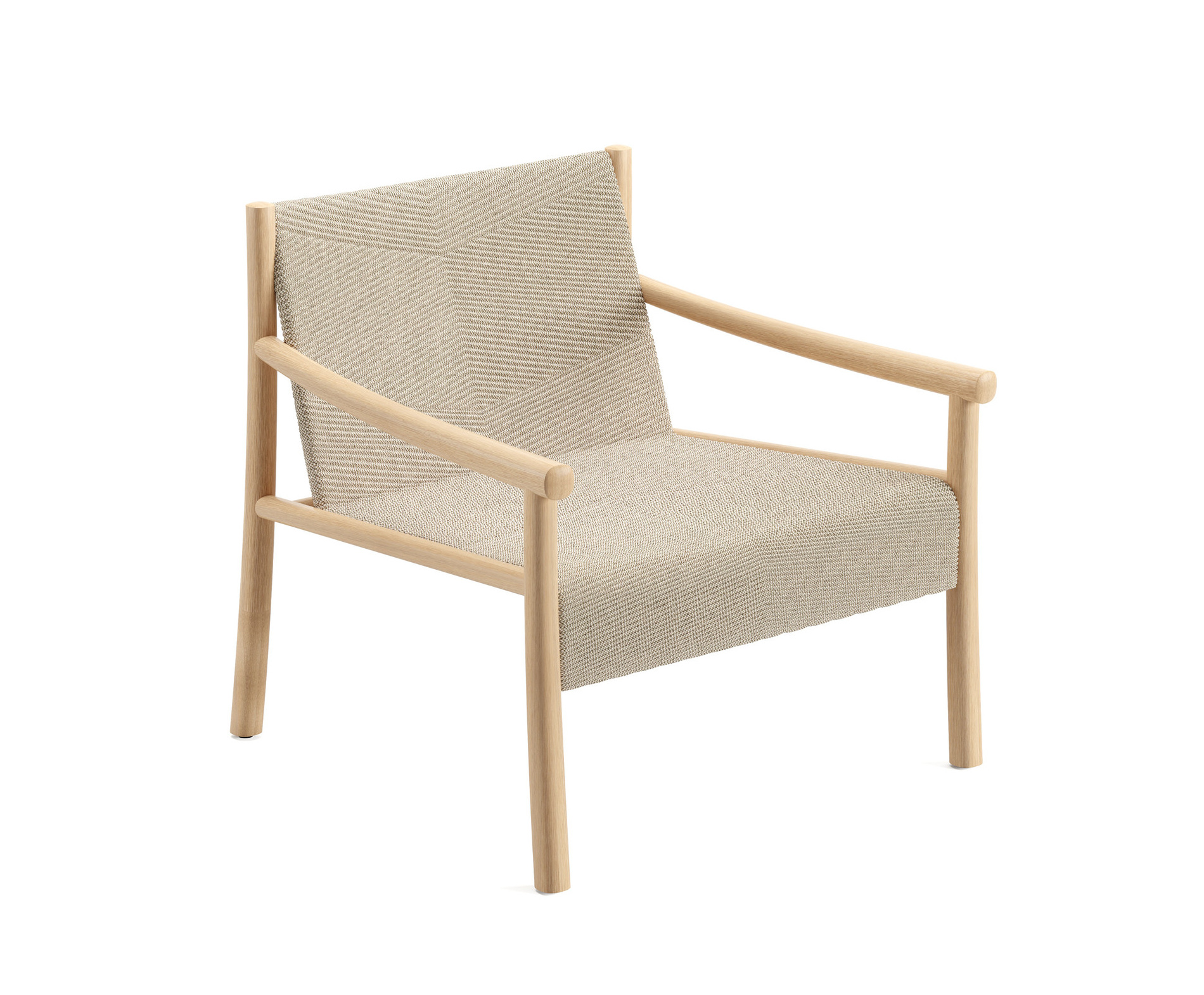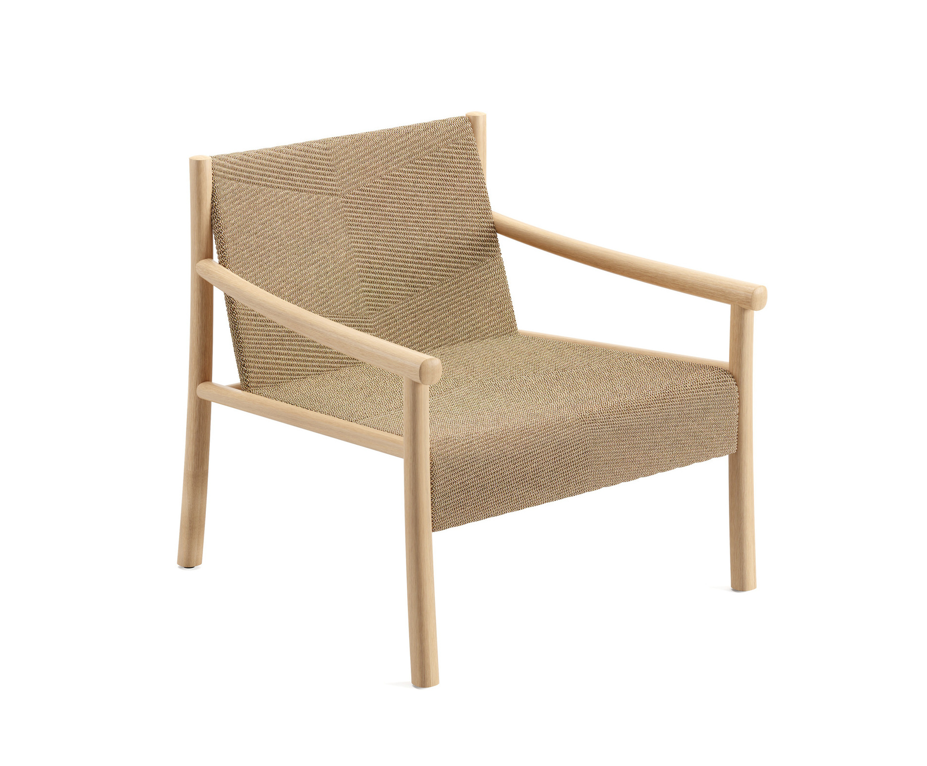 | Material: | Lounge-Sessel mit Struktur aus Massivholz Eiche mit Naturfinish oder schwarz gebeizt. Schale mit Stahlrahmen und mikrowattiertes 3D-Knit-Gewebe mit grafischem Muster aus recycelten Polyesterfasern, verfügbar in 3 Farben. Geeignet für den Indoor- Gebrauch. |