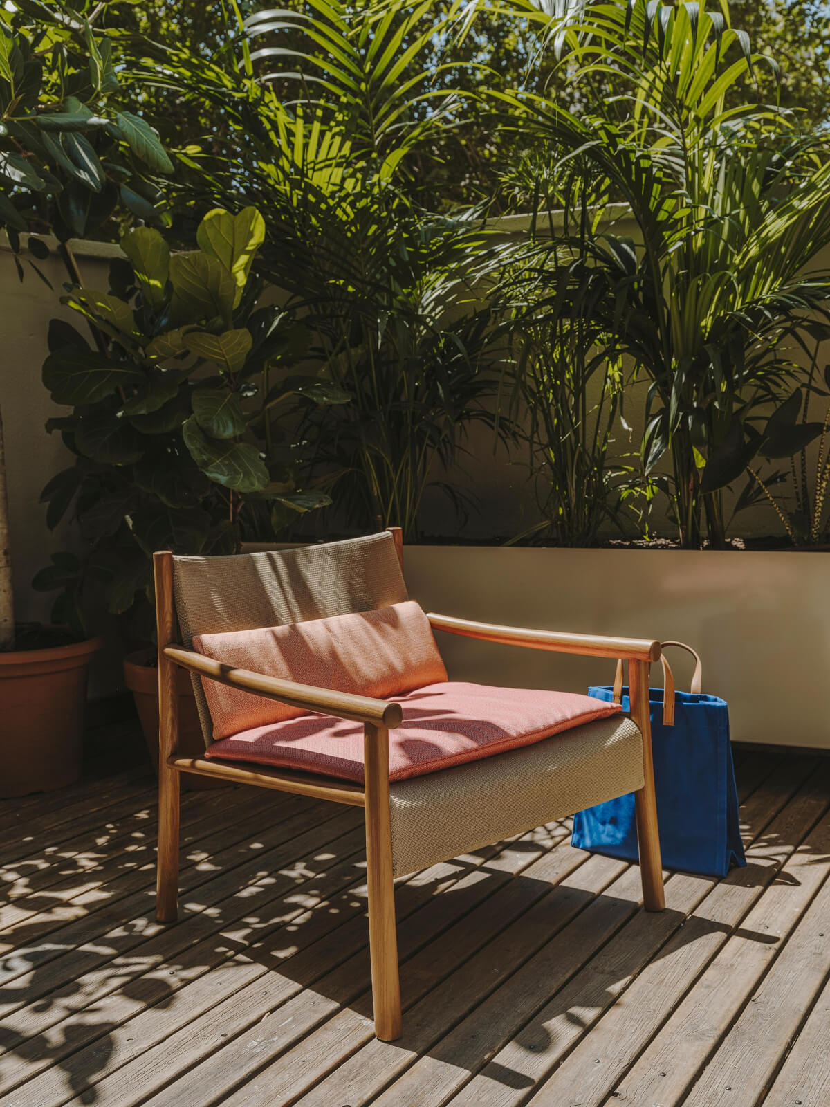 | Material: | Lounge-Sessel mit Struktur aus Massivholz Robinie mit Teak- Beizung. Schale mit Stahlrahmen und 3D-Knit-Gewebe mit Streifenmuster aus recycelten Polyesterfasern, verfügbar in 3 Farben. Geeignet für den Indoor- und Outdoor-Gebrauch. |