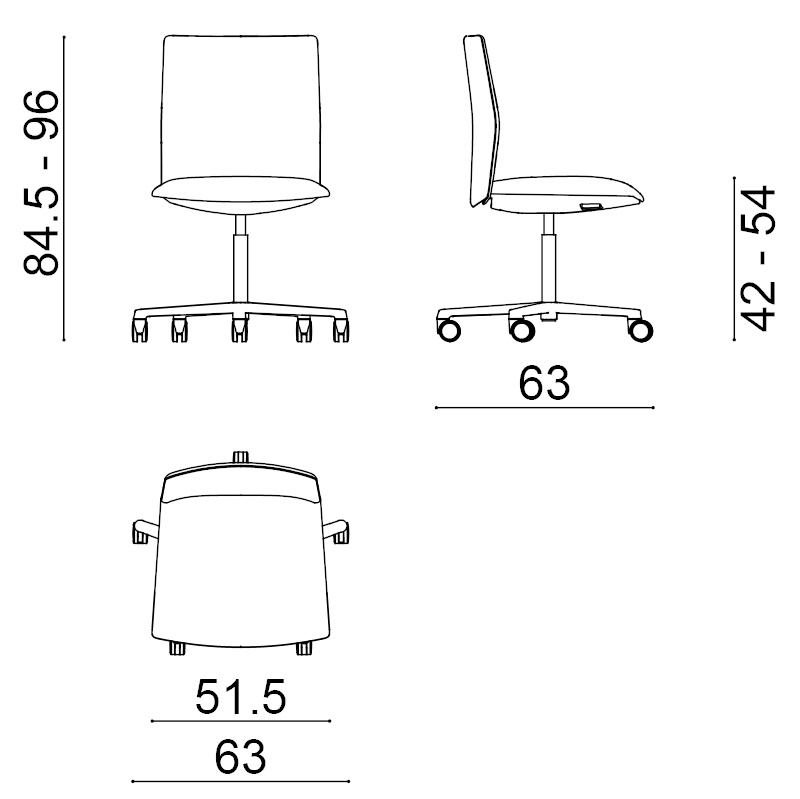 | Abmessungen: | Breite: 63 cm, Höhe: 84,5 - 96 cm, Tiefe: 63 cm |