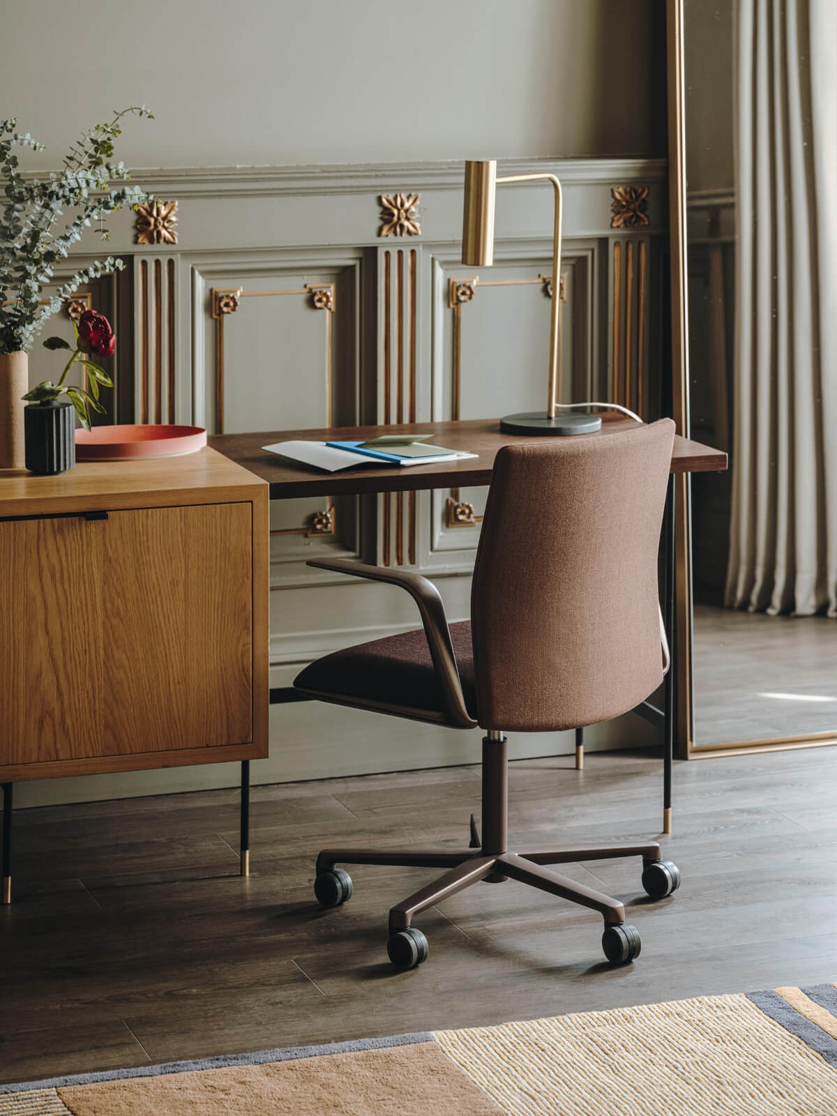 Der Arper Kinesit Bürodrehstuhl vereint eleganten Minimalismus und innovative Funktionalität zu einer beeindruckenden Symbiose für anspruchsvolle Interieurs. Die klare, reduzierte Linienführung entfaltet eine harmonische Präsenz, die jedem modernen Büro eine ruhige wie inspirierende Note verleiht. Durch seine voll bezogene Ausführung wirkt der Stuhl nicht nur visuell besonders hochwertig, sondern setzt auch haptisch neue Maßstäbe. Präzise abgestimmte Proportionen und ein fließendes Zusammenspiel aus Sitzkomfort und Bewegungsfreiheit machen den Kinesit Bürodrehstuhl zu einem stilprägenden Element. Ob in großzügigen Executive-Offices, offenen Kreativräumen oder exklusiven Homeoffice-Bereichen: Dieser Bürodrehstuhl lässt sich spielerisch in unterschiedlichste Raumkonzepte integrieren und wird dabei höchsten ästhetischen und funktionalen Ansprüchen gerecht. Der von Lievore Altherr Molina entworfene Stuhl überzeugt technisch mit stufenlos einstellbarer Neigung, individuell einstellbarer Rückenlehne sowie Höhenverstellung. Die edle, voll bezogene Schale steht in zahlreichen Farbvarianten zur Verfügung, während Gestell und Fußkreuz aus langlebigem Aluminium gefertigt sind. Die Maße bieten ergonomischen Komfort und eine harmonische Sitzposition über lange Arbeitszeiten hinweg. Der Kinesit Bürodrehstuhl ist in verschiedenen Konfigurationen erhältlich.Vollendete Qualität und exklusive Ausführung