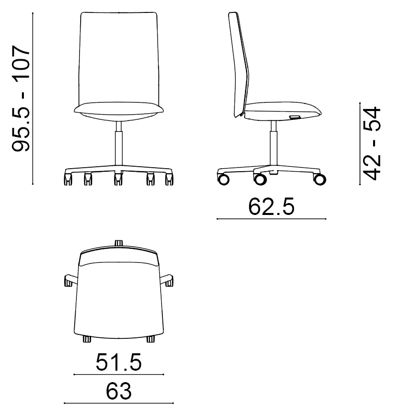 | Mechanik: | Ausgestattet mit einer gewichtsregulierten Synchronmechanik, die in die Sitzfläche integriert ist, mit Blockierung der Rückenlehne in drei Positionen und Lendenstütze, die um 60 mm verstellbar ist. |