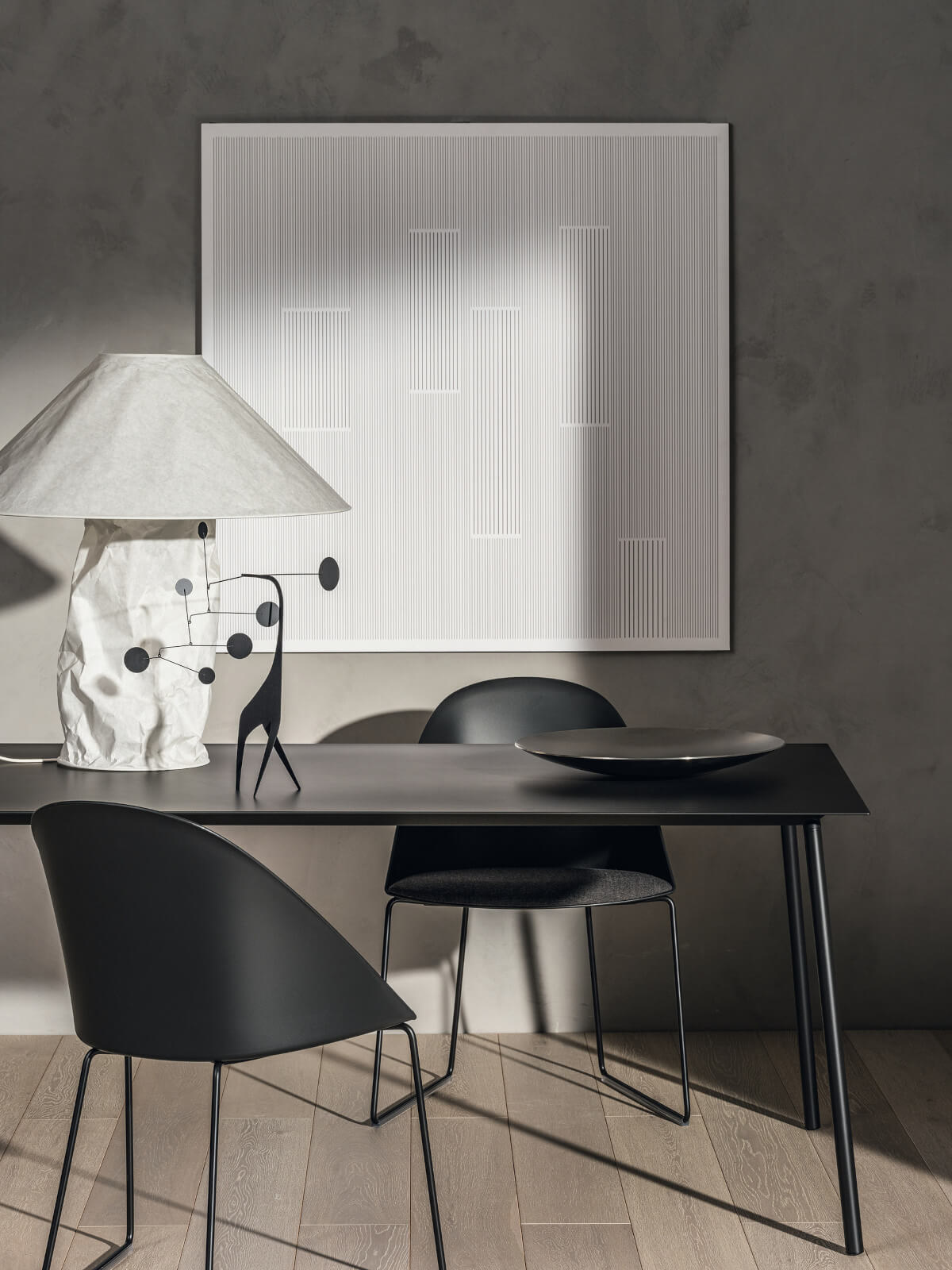 | Details: | So wie bei der Origami-Technik Papier in Form gefaltet wird, wird für Onemm ein einziges Stahlblech zu einem schlanken, skulpturalen Tisch geformt. Unglaublich dünn und leicht – mit einer radikal minimalistischen Geste, wird bei Onemm die Idee des Tisches entmaterialisiert: Die Linie der Form wird nachgezeichnet, um so ihre Essenz zu finden. Das Ergebnis ist ein Tisch von klarer, zeitloser und eleganter Ausstrahlung. |