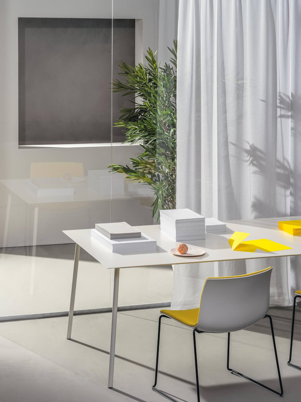 | Hinweis: | Die leichten und essenziellen Linien, welche die Tischkollektion Onemm auszeichnen, erlauben es ihr, sich einfach an jede Art von Umgebung anzupassen: von Contract- bis Wohn-Bereiche |