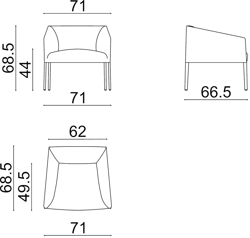 | Abmessungen: | Breite: 71 cm, Höhe: 68,5 cm, Tiefe: 68,5 cm |