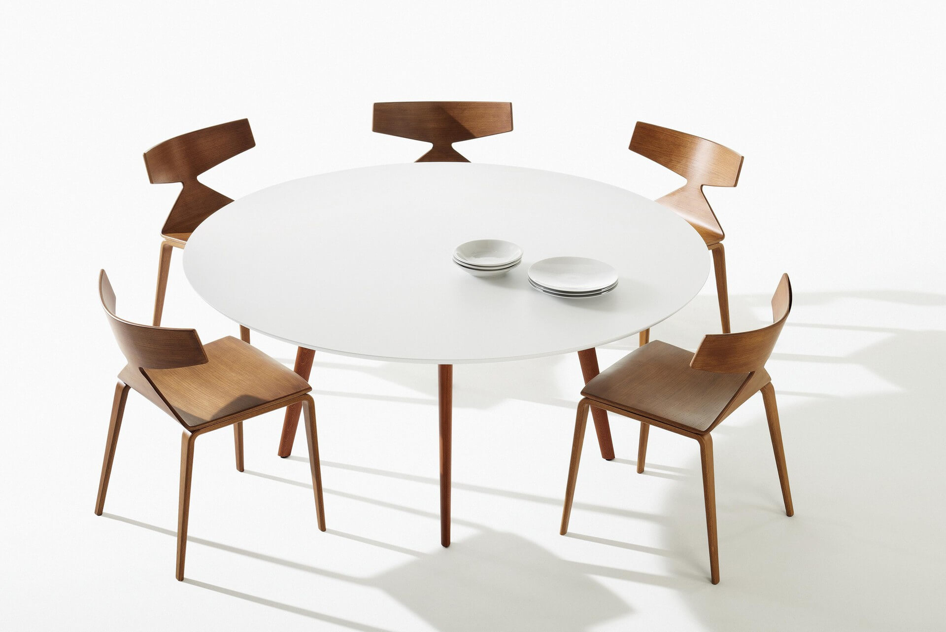 Der Saya 3701 Stuhl mit Vierfußgestell wird aus sorgfältig verarbeitetem Schichtholz gefertigt und ist in verschiedenen Holzfarben und Lackierungen erhältlich. Mit Maßen von ca. 52 cm Breite, 53 cm Tiefe und 80 cm Höhe sowie einer Sitzhöhe von 45 cm bietet er ausgewogene Proportionen für vielseitige Einsatzmöglichkeiten. Das Design stammt von Lievore Altherr Molina und erlaubt optional auch Armlehnen. So lassen sich individuelle Raumsituationen mit dem passenden Modell gestalten.