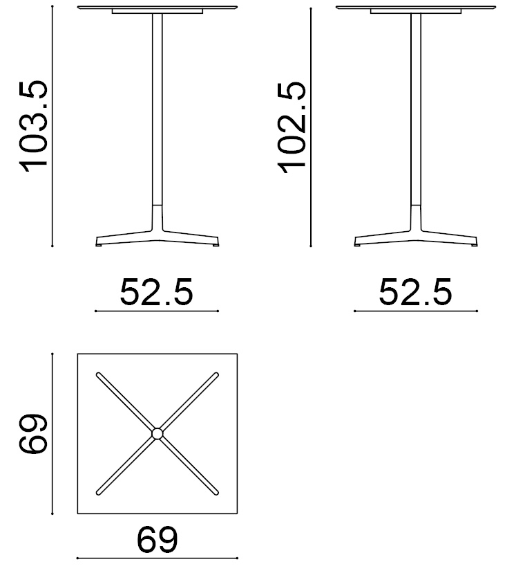 | Material: | Quadratischer Tisch mit Gestell aus lackiertem Aluminium, ausgestattet mit verstellbaren Beinen. Platte aus Compact HPL (Dicke 1 cm). |