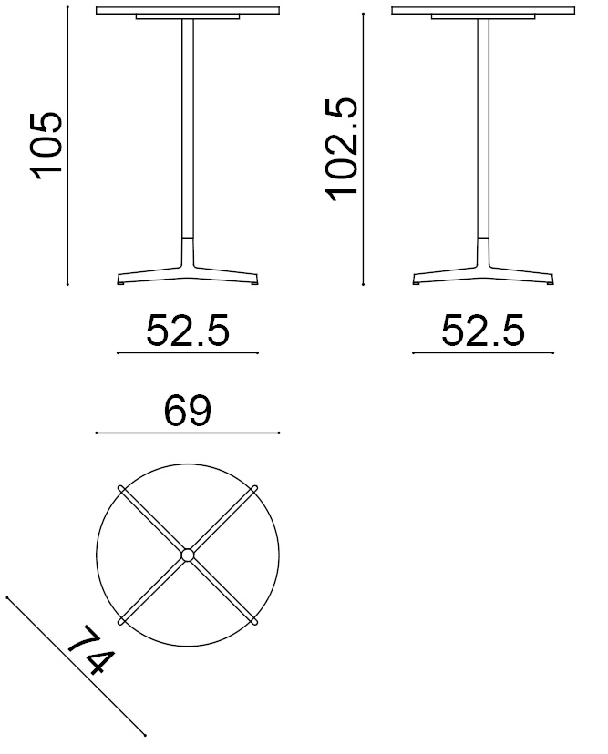 | Material: | Runder Tisch mit Gestell aus lackiertem Aluminium, ausgestattet mit verstellbaren Beinen. Platte aus melaminharzbeschichteten Spanplatten (Dicke 2,5 cm). |