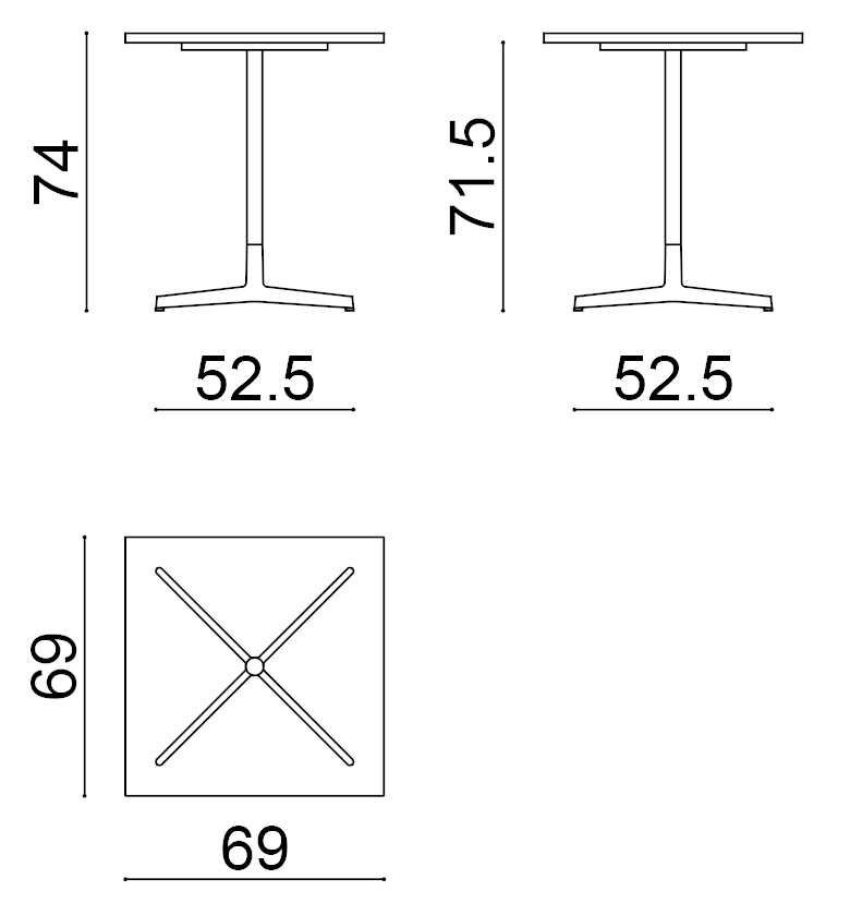 | Material: | Quadratischer Tisch mit Gestell aus lackiertem Aluminium, ausgestattet mit verstellbaren Beinen. Platte aus Spanplatten, beschichtet mit Fenix®-Laminat (Dicke 2,4 cm). |