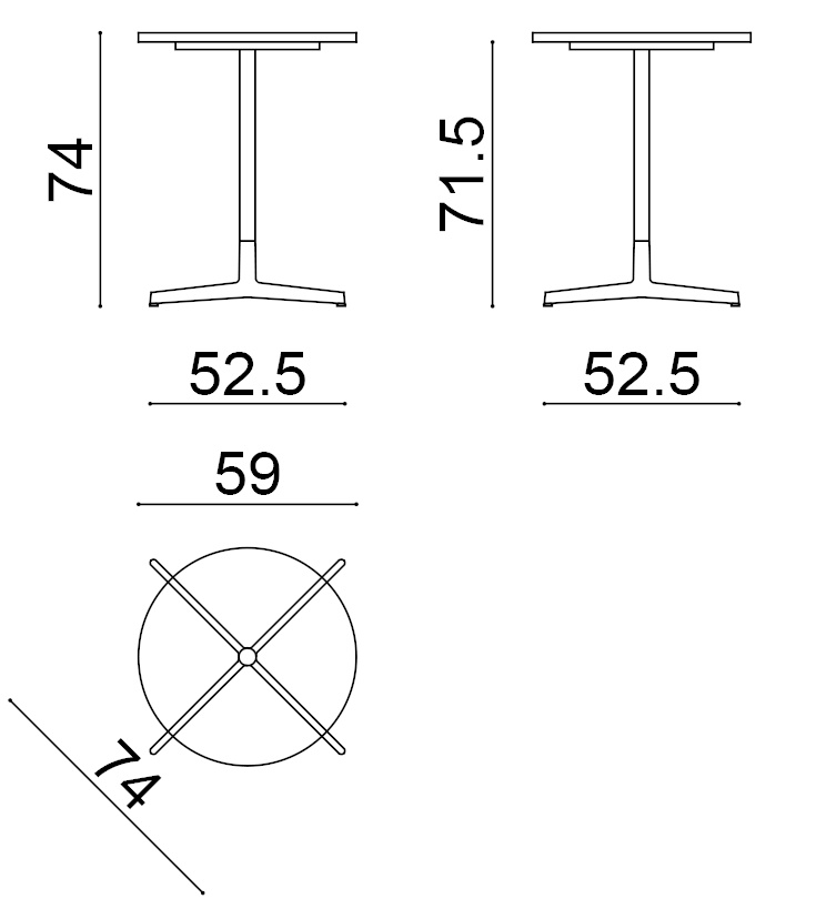 | Material: | Runder Tisch mit Gestell aus lackiertem Aluminium, ausgestattet mit verstellbaren Beinen. Platte aus Spanplatten, beschichtet mit Fenix®-Laminat (Dicke 2,4 cm). |