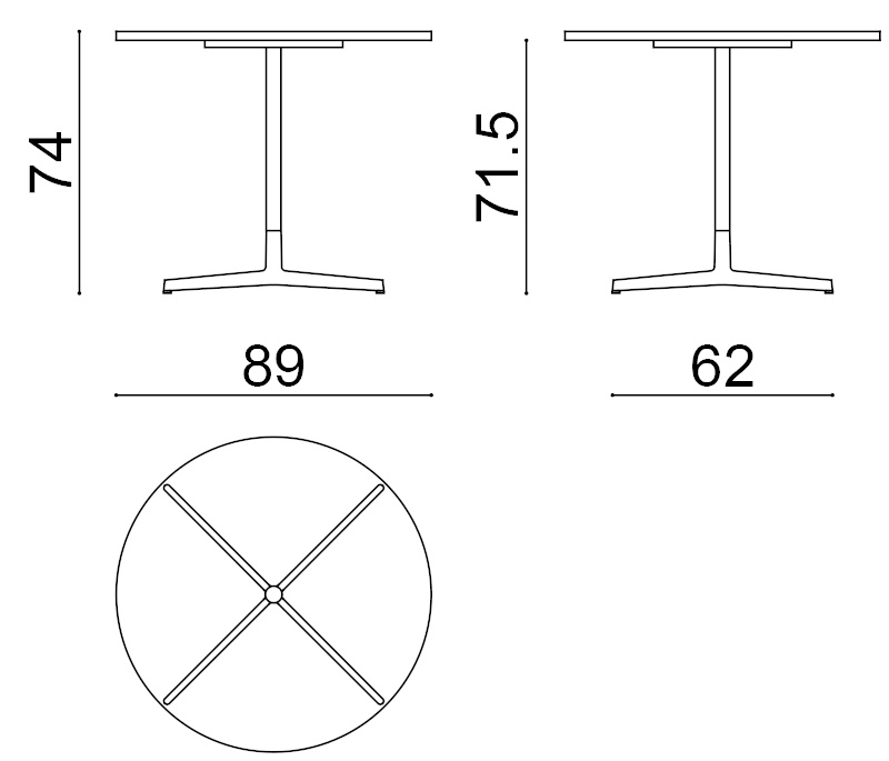 | Material: | Runder Tisch mit Gestell aus lackiertem Aluminium, ausgestattet mit verstellbaren Beinen. Platte aus Spanplatten, beschichtet mit Fenix®-Laminat (Dicke 2,4 cm). |