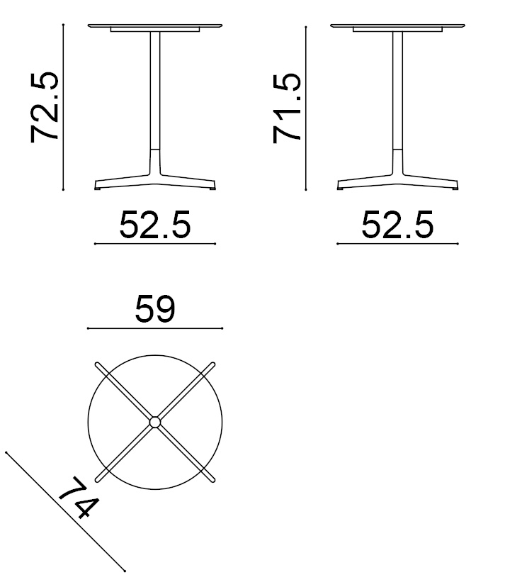 | Material: | Runder Tisch mit Gestell aus lackiertem Aluminium, ausgestattet mit verstellbaren Beinen. Platte aus Compact HPL (Dicke 1 cm). |