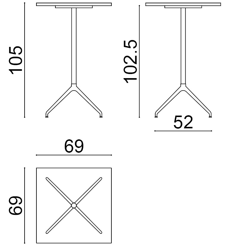 | Material: | Quadratischer Tisch mit Gestell aus lackiertem Aluminium, ausgestattet mit verstellbaren Beinen. Platte aus Spanplatten, beschichtet mit Fenix®-Laminat (Dicke 2,4 cm). Verfügbar in fester Version oder mit Flipping-Mechanismus. |