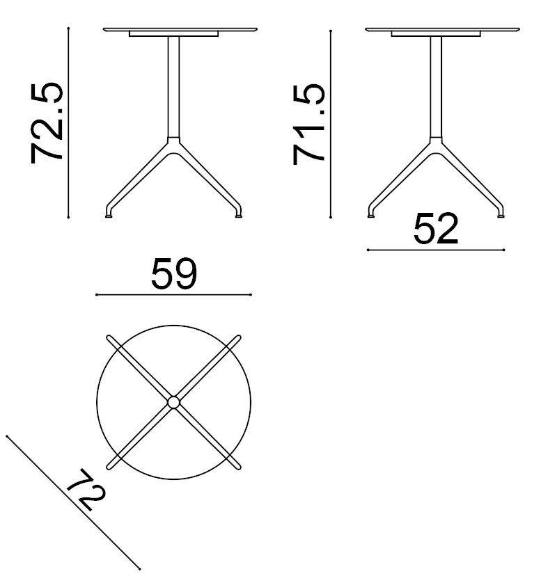 | Material: | Runder Tisch mit Gestell aus lackiertem Aluminium, ausgestattet mit verstellbaren Beinen. Platte aus Compact HPL (Dicke 1 cm). Verfügbar in fester Version oder mit Flipping-Mechanismus. |