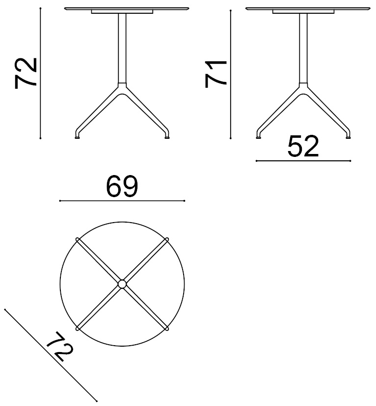 | Material: | Runder Tisch mit Gestell aus lackiertem Aluminium, ausgestattet mit verstellbaren Beinen. Platte aus Compact HPL (Dicke 1 cm). Verfügbar in fester Version oder mit Flipping-Mechanismus. |