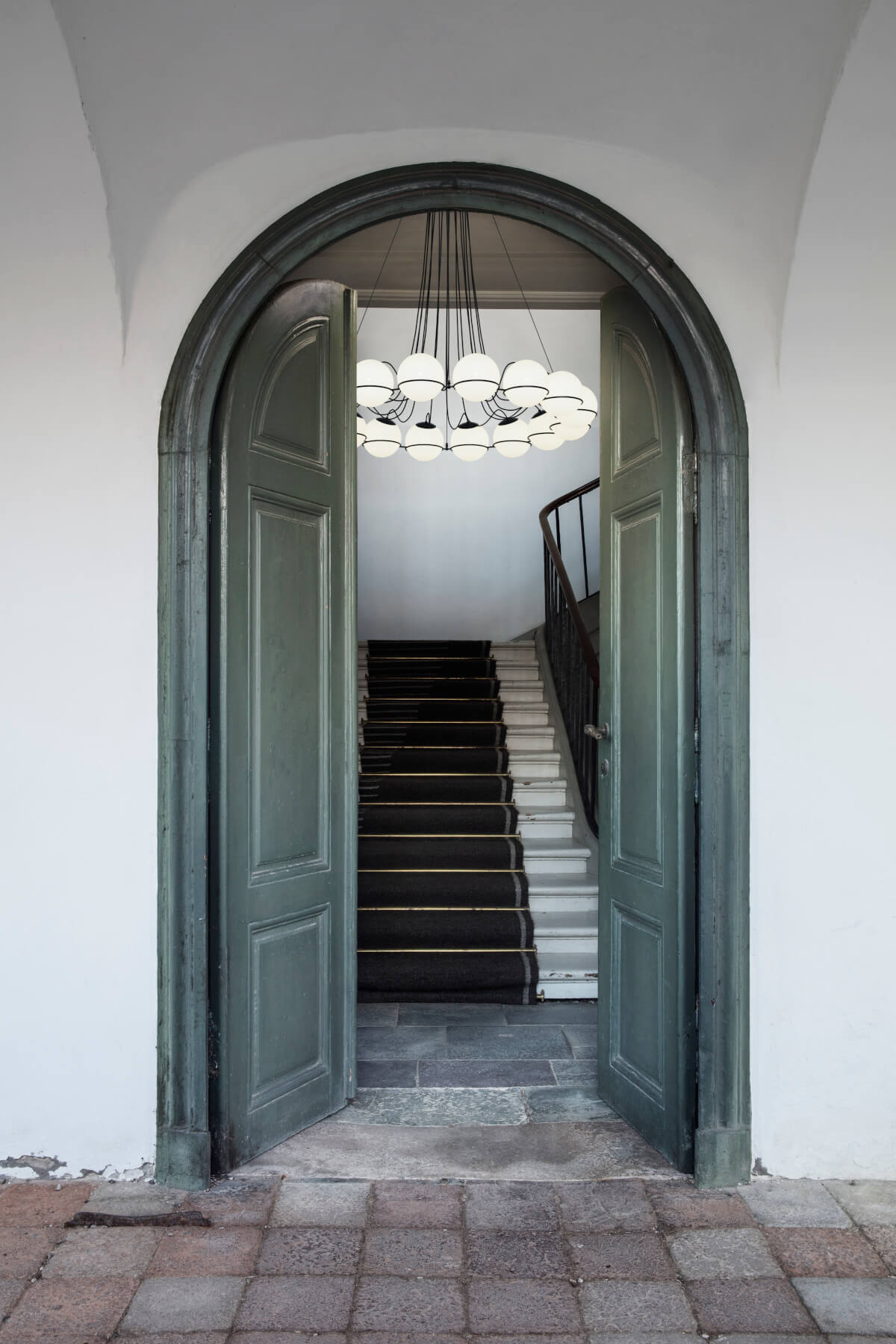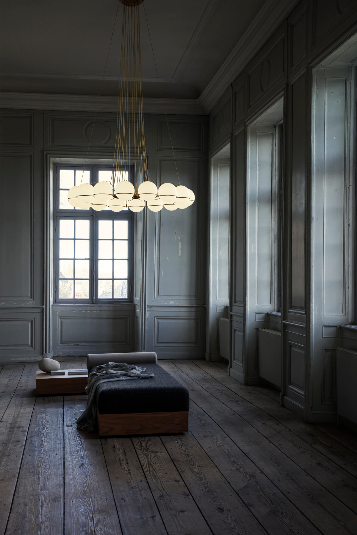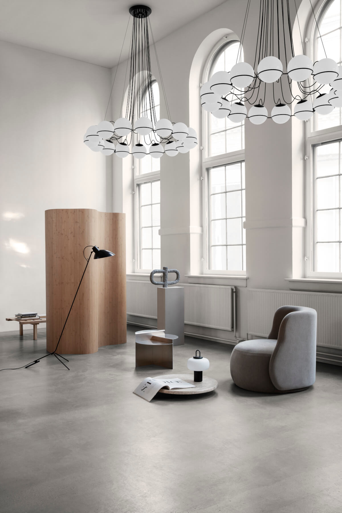 | Details: | Der Le Sfere Kronleuchter besteht aus einer kreisförmigen Anordnung von Kugeln aus geblasenem Opalglas. Jede Kugel wird von einer großen, schwarz oder champagnerfarben lackierten Stahlringstruktur gehalten. Die Kugeln können nach unten oder nach oben ausgerichtet werden, um eine direkte oder indirekte Beleuchtung zu ermöglichen. |
