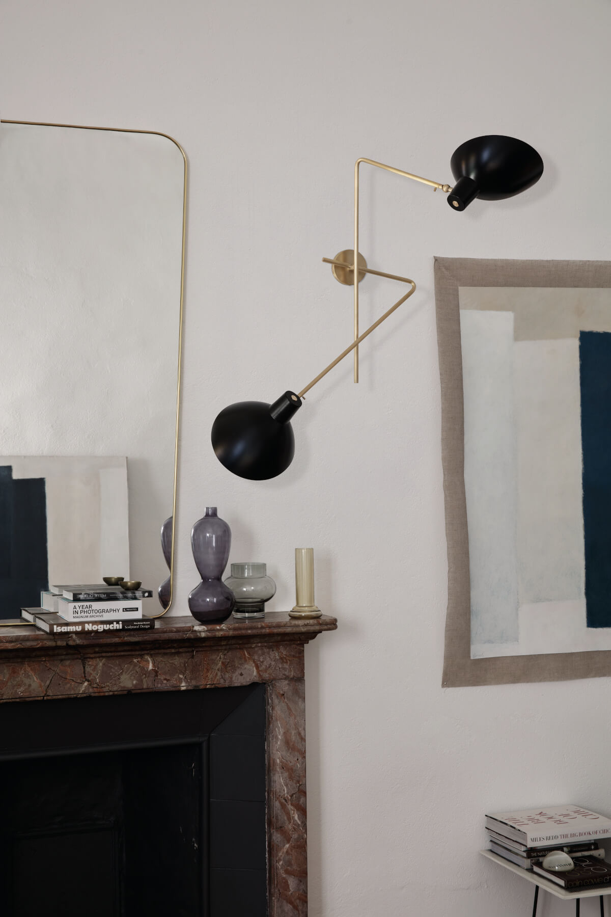 VV Cinquanta Twin Wandleuchte, messing halterung, schwarze reflektion