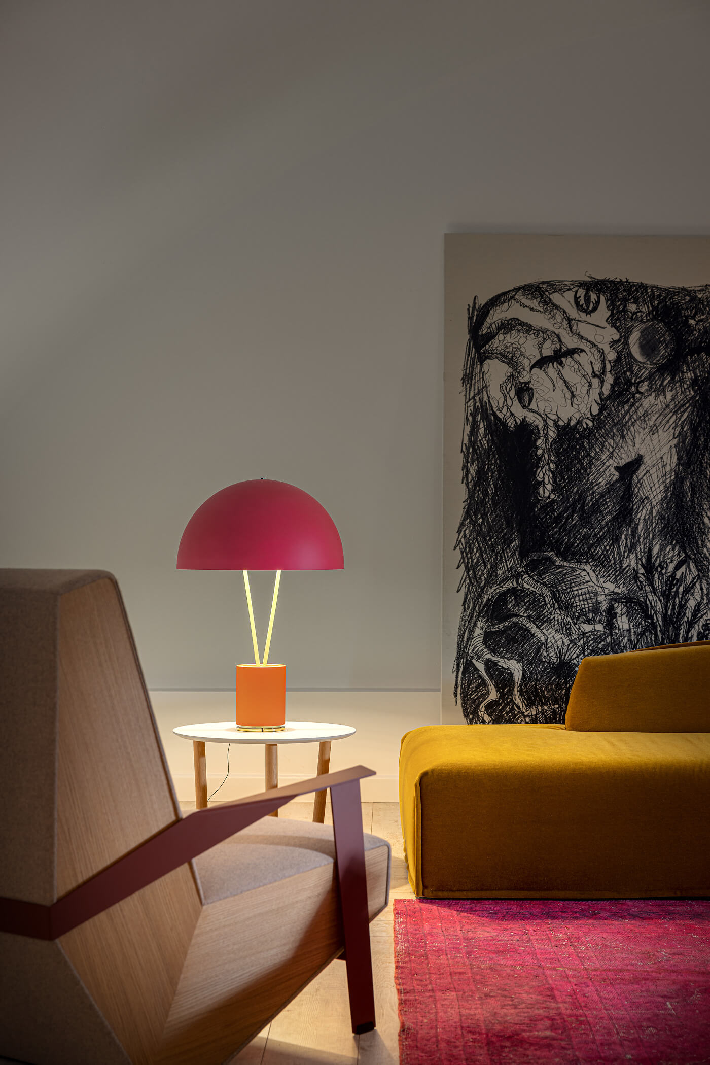 | Hinweis: | Das ironische Detail der Fliege auf der Halbkugel kennzeichnet alle Lampen. Ale BIG ist eine elegante Tischlampe, die viel Licht spendet und über den roten Knopf am Fuß dimmbar ist. |