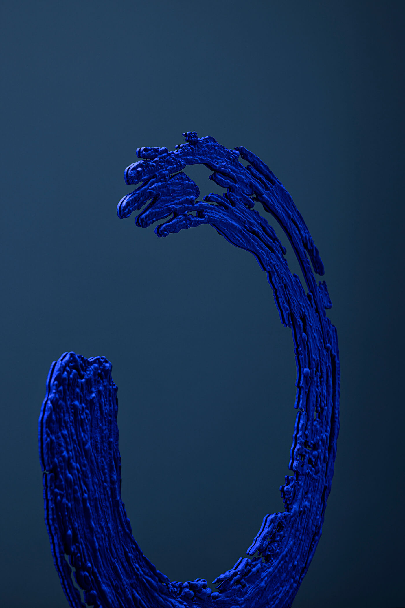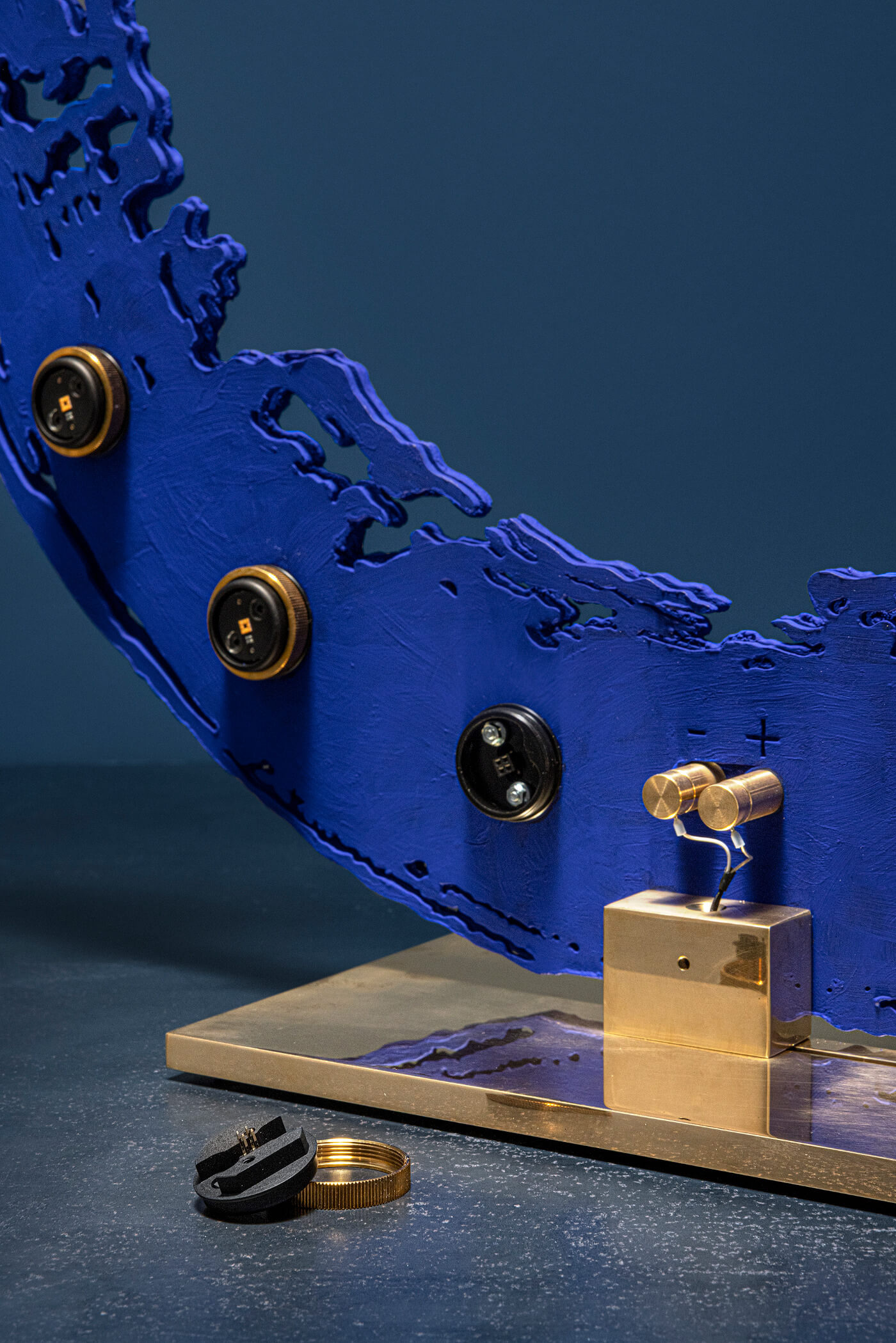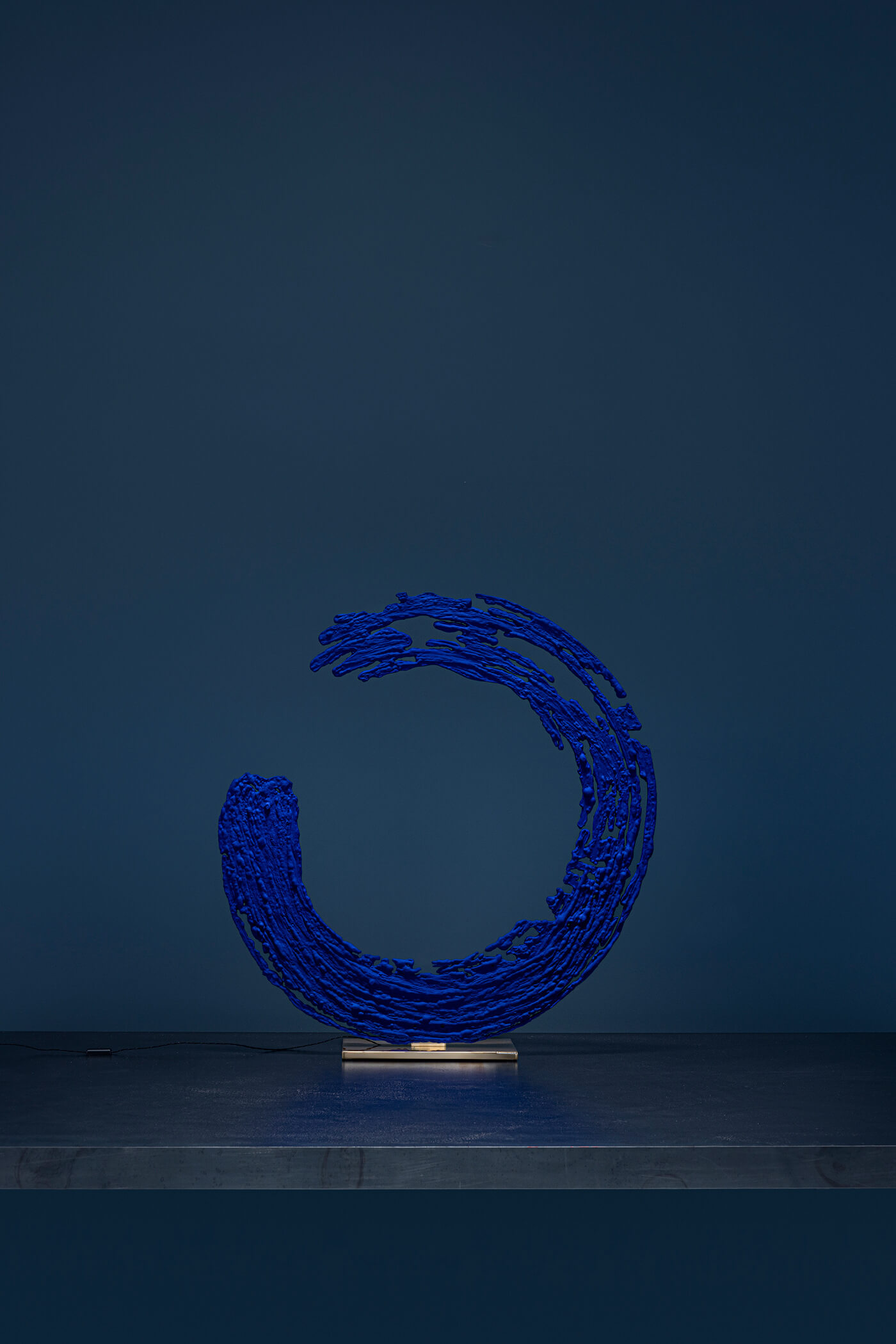 | Material: | Fuß und Details aus Messing, Struktur aus Metall, unregelmäßige blaue handlackierte Außenfläche |