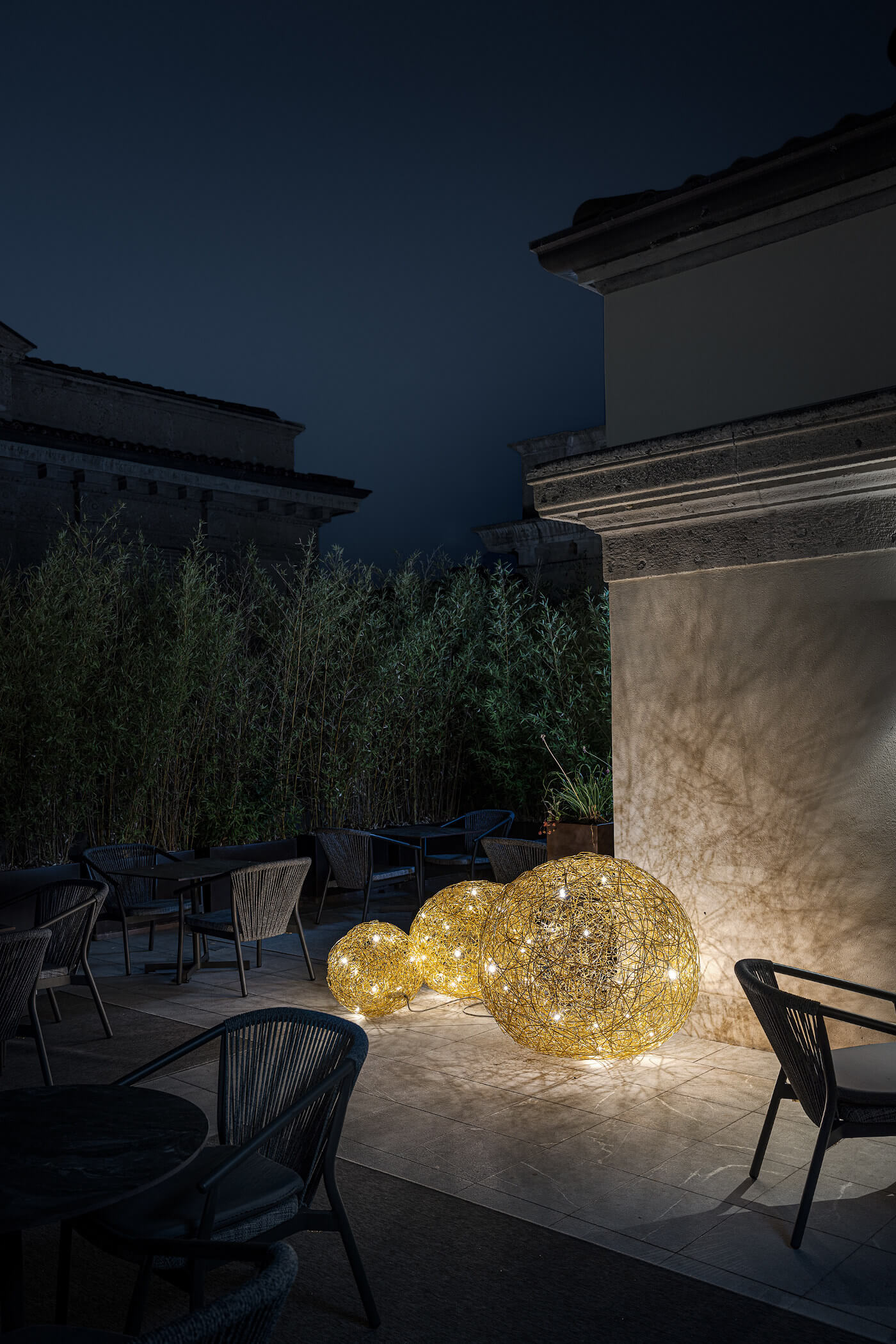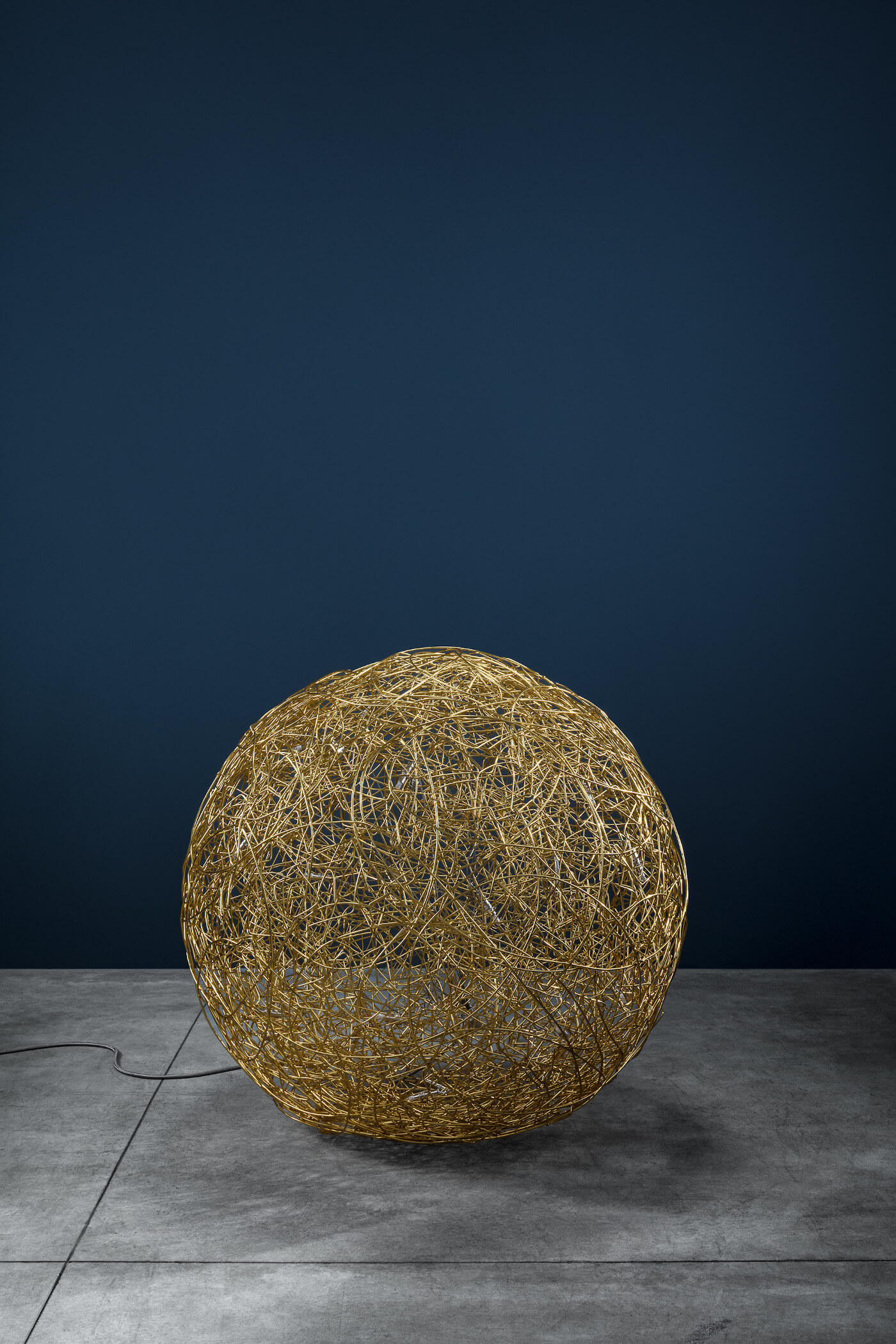 Die Fil De Fer F Bodenleuchte ist in unterschiedlichen Durchmessern erhältlich und wird aus handgeformtem Aluminium gefertigt, dessen goldene Oberfläche dem Objekt eine exquisite Ausstrahlung verleiht. Designer Enzo Catellani hat mit dieser Leuchte ein zeitloses Kunstwerk geschaffen, das mit warmweißen LED-Leuchtmitteln ausgestattet ist. Verschiedene Größen und Ausführungen ermöglichen eine individuelle Anpassung an Raumdimension und Einrichtungsstil. Die sorgfältige Verarbeitung sowie die hochwertigen Materialien garantieren Langlebigkeit und eine stets strahlende Leuchtkraft.