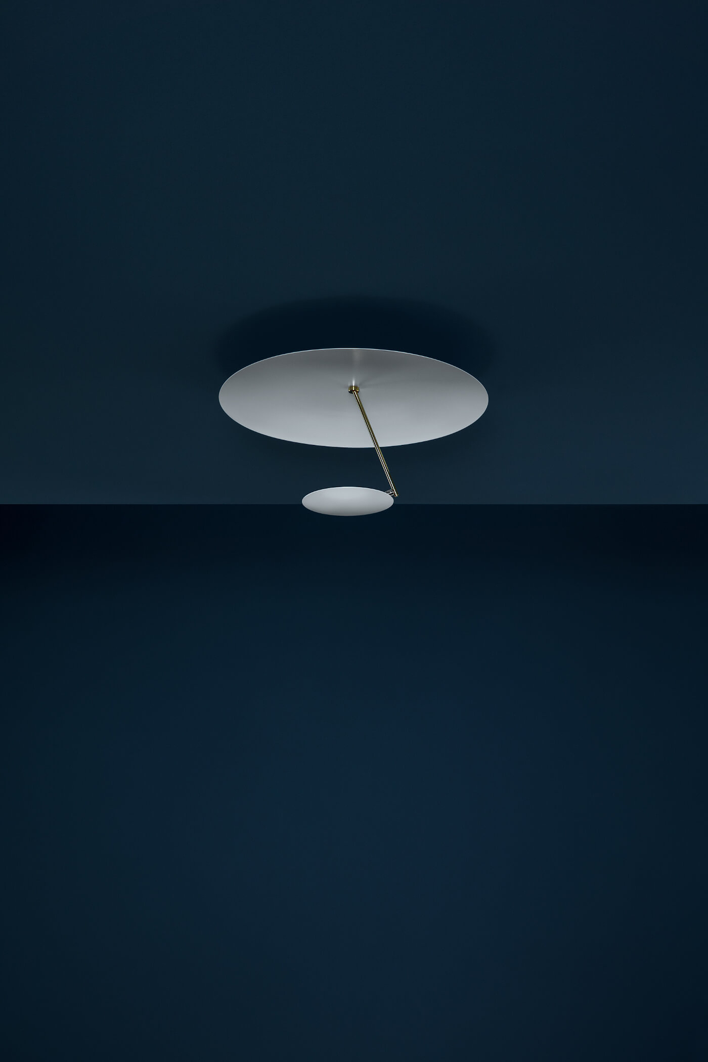 Mit einem Durchmesser von 50 Zentimetern bietet die Catellani & Smith Lederam C150 Deckenleuchte beeindruckende Dimensionen. Die runde Scheibe besteht aus feinem Aluminium, ergänzt durch einen dezent gearbeiteten Metallsockel und filigrane Details aus Kupfer. Über einen leistungsstarken LED-Modul mit 17 Watt sorgt die Leuchte für warmweißes Licht mit ausgewogener Farbtemperatur. Entworfen wurde die LED-Deckenleuchte von Enzo Catellani, erhältlich in verschiedenen edlen Oberflächen wie Gold, Kupfer, Schwarz oder Weiß.